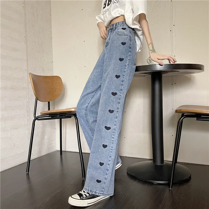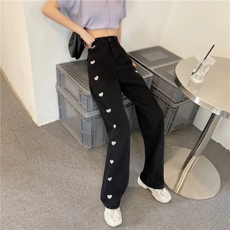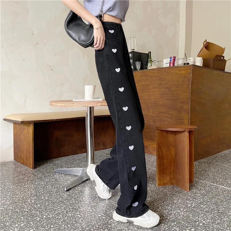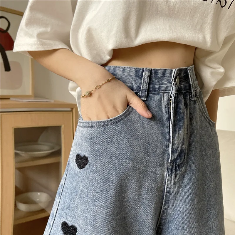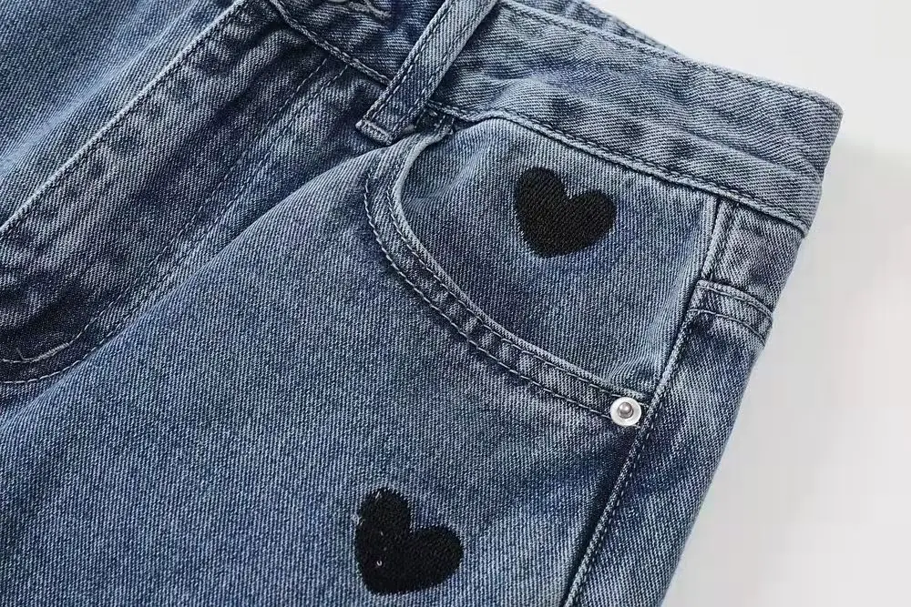 Свободные и удобные прямые джинсы в стилеПриталенный крой, трехмерный дизайн талии, удобный и естественныйЛегко носить без выбора типа тела для модного образаКлючевой дизайн-вышитое сердце сбоку!Переплетенный цвет желтого и синего действительно-абсолютно ~ любовь или что-то слишком привлекательное ~Сказочные джинсы, которые абсолютно не теряют денег ~