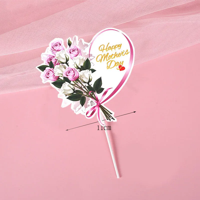 5pcs/lot Lovely Heart Flower Cake Topper Happy Mother's Day Cupcake Flags Birthday Party Dessert Cake Decorations For Mom