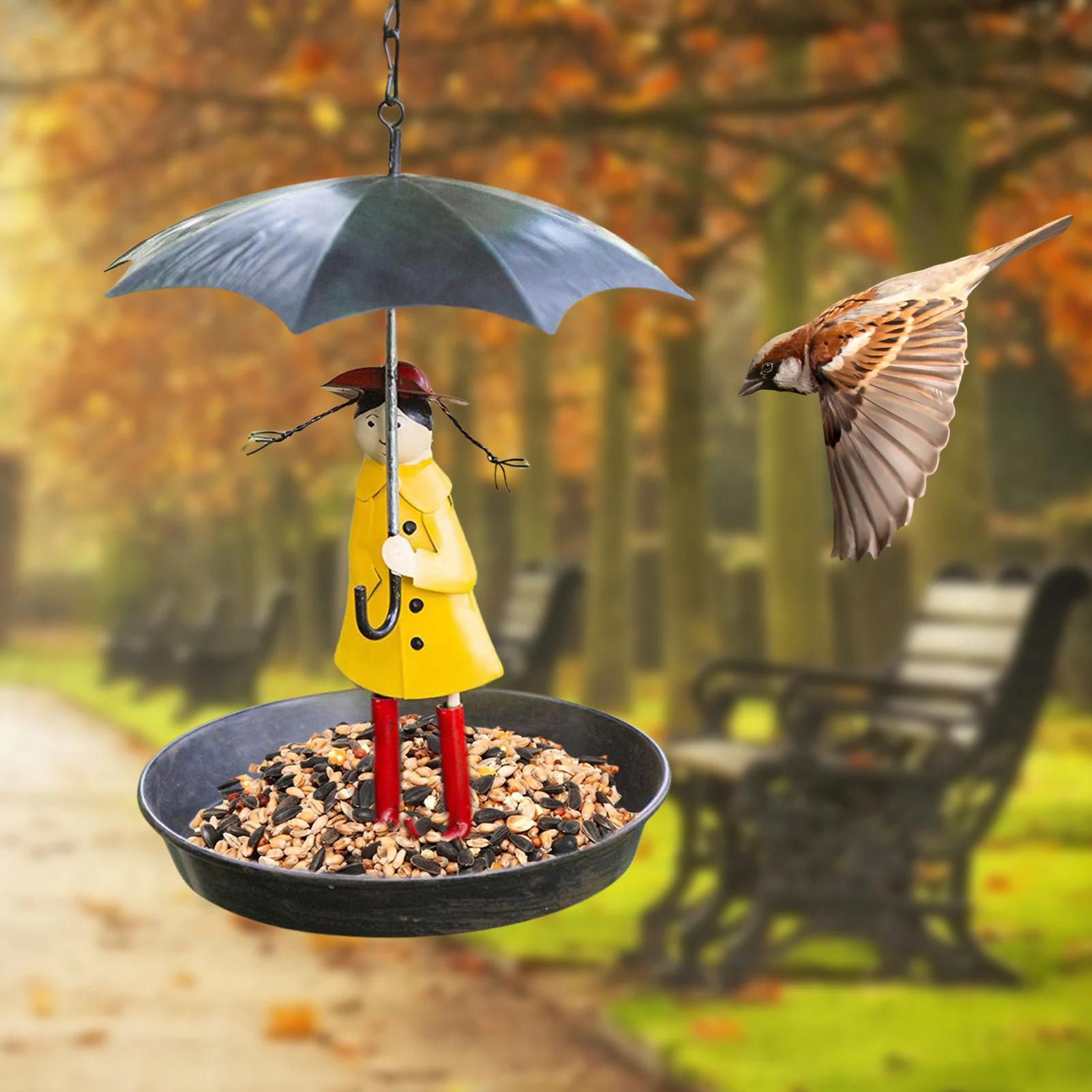 Подвесной кормушка для диких птиц, открытый контейнер с металлической подвесной цепочкой, зонт для девочек, герметичное украшение для сада