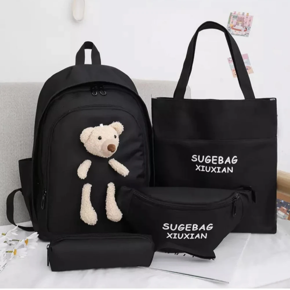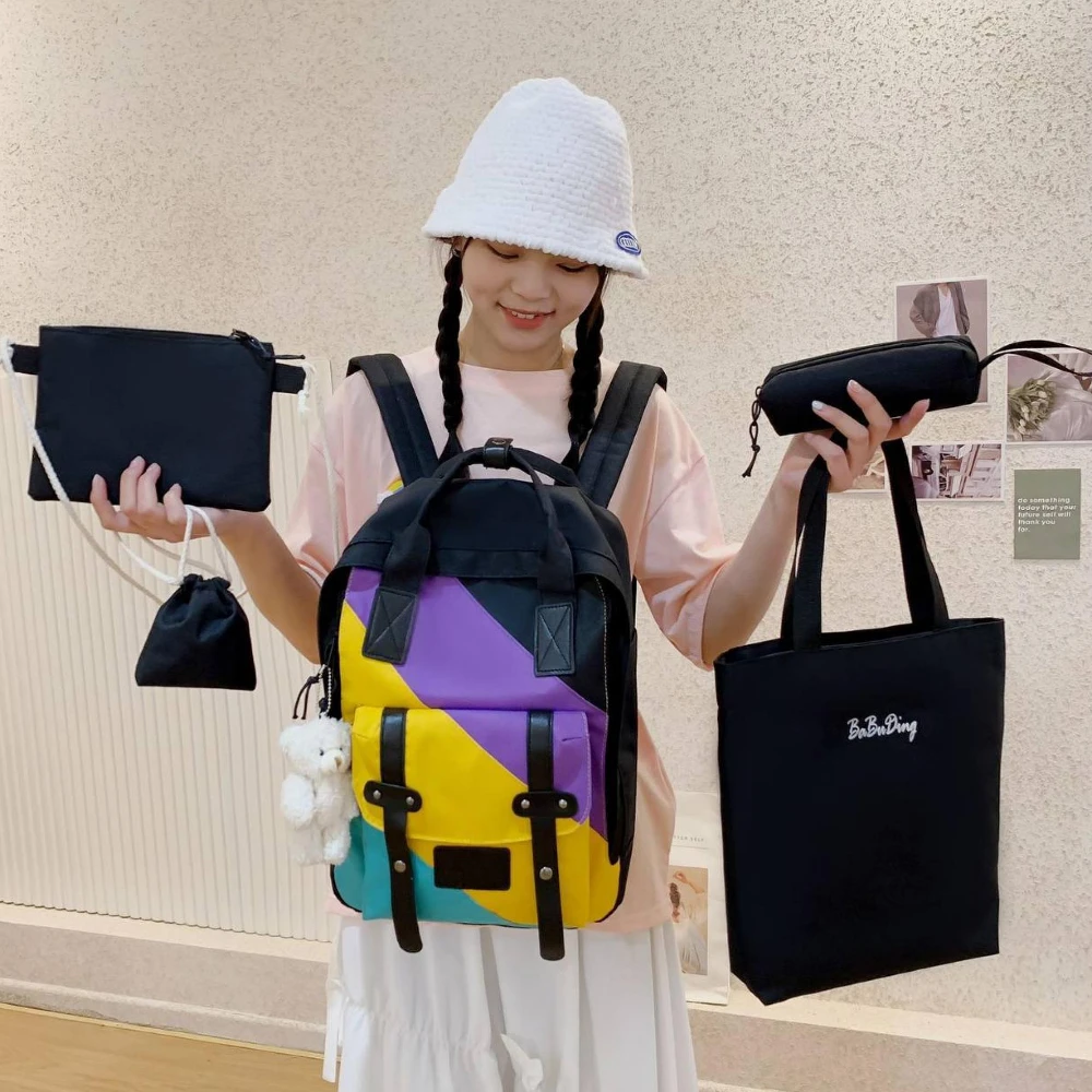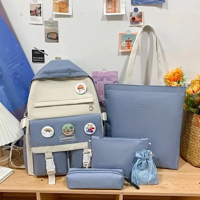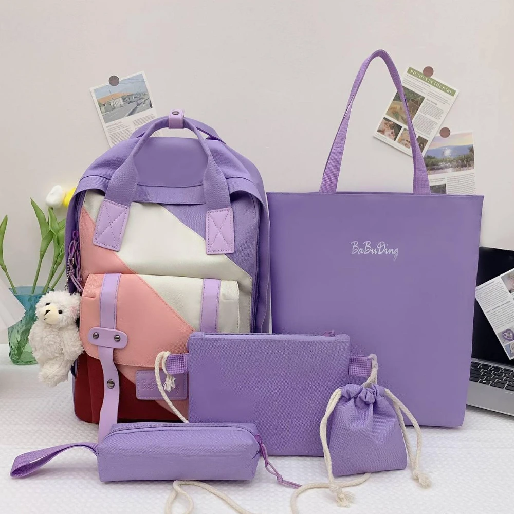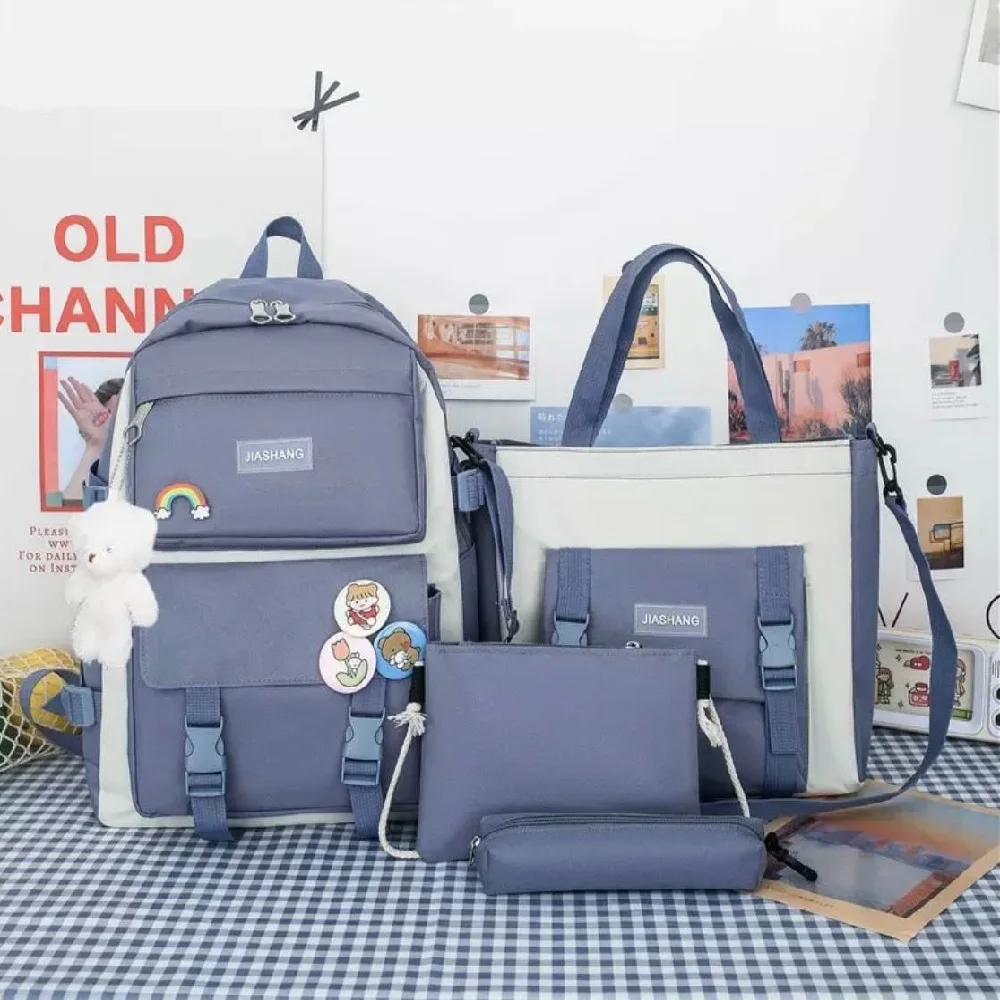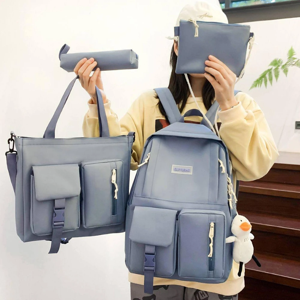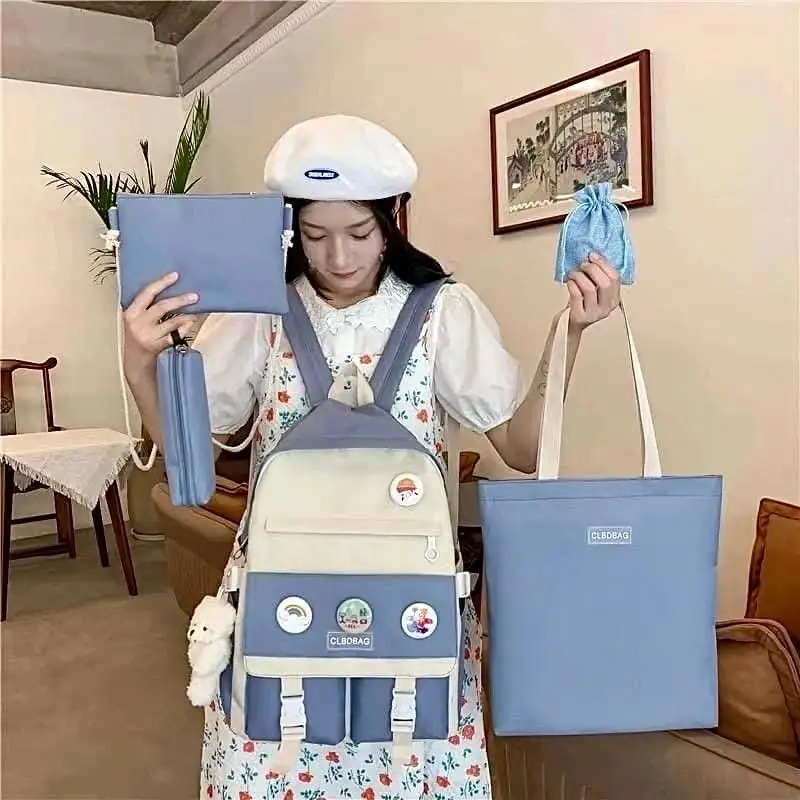 В комплект из 4 и 5 предметов входят рюкзак, клатч, чехол-карандаш, сумка, мешочек (в комплекте 5 предметов). Идеальный дорожный набор, для колледжа, школы и для повседневной жизни. Комплект изготовлен из высококачественной ткани. Легко моется. Есть отделение для ноутбука, папка А4, для телефона, для мелочей, для офиса. Есть боковой скрытый карман для планшета. Очень вместительный рюкзак. Ультралегкий, является отличной альтернативой громоздким школьным портфелям.