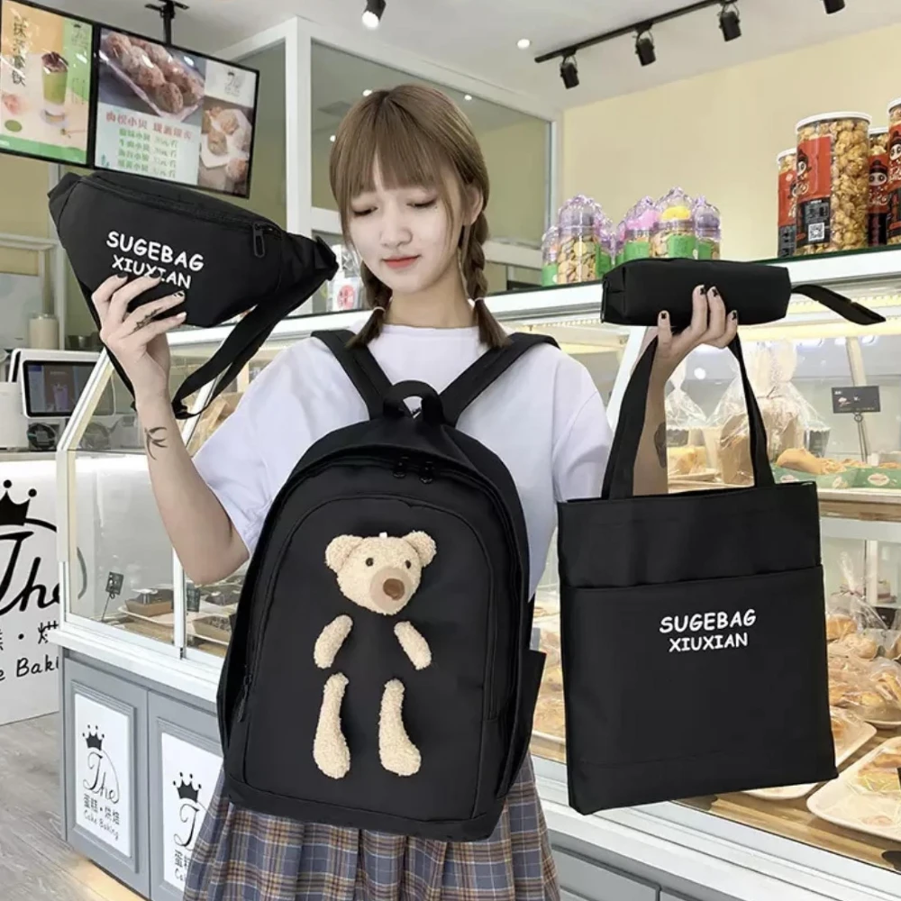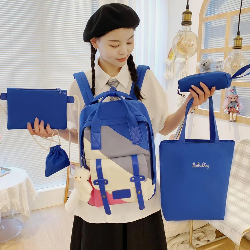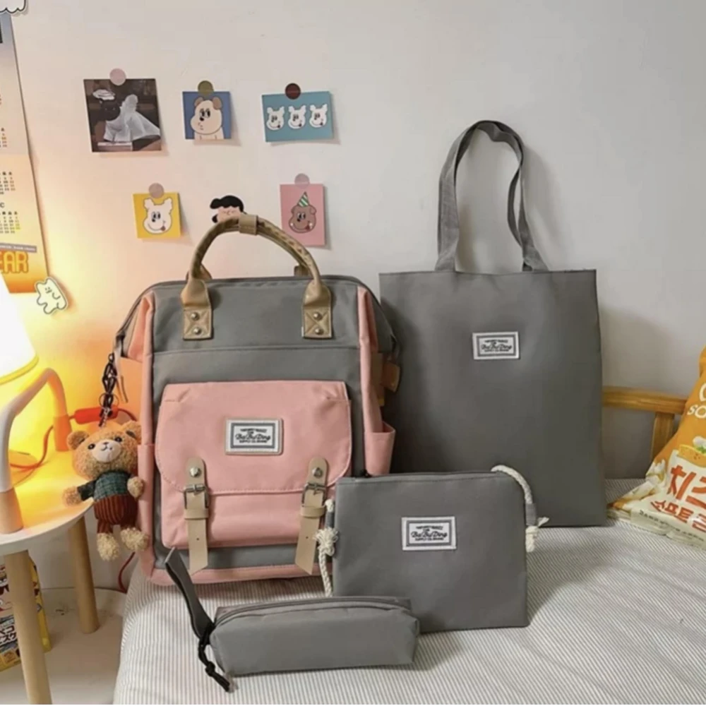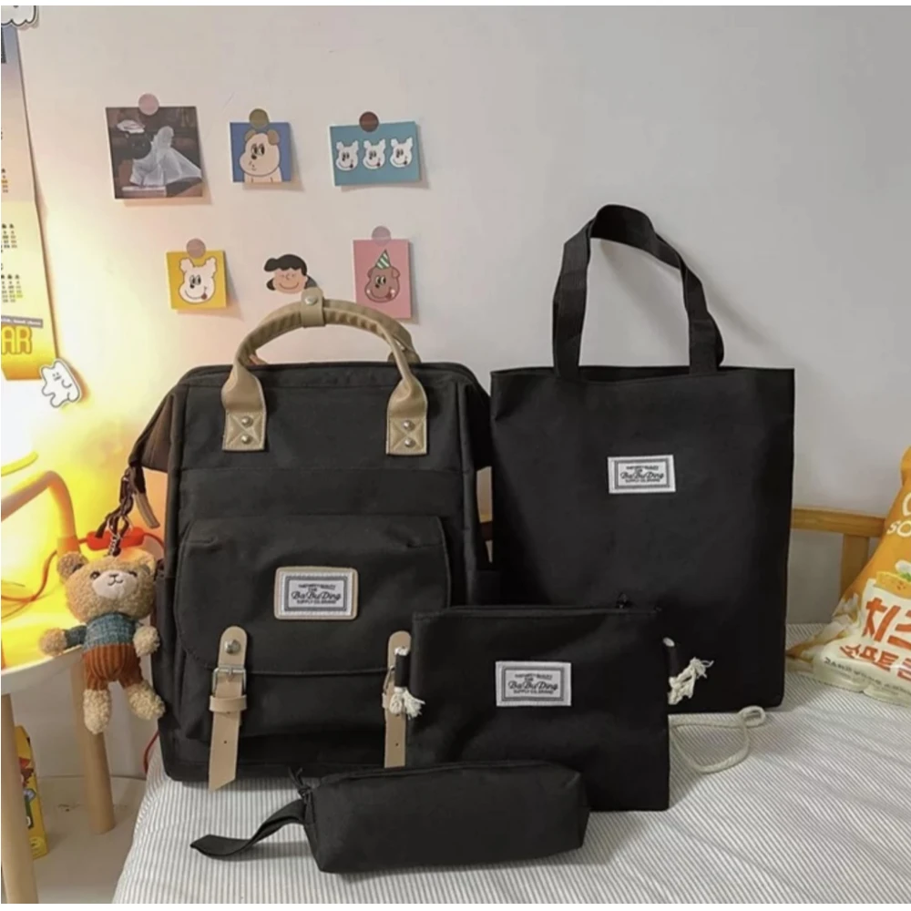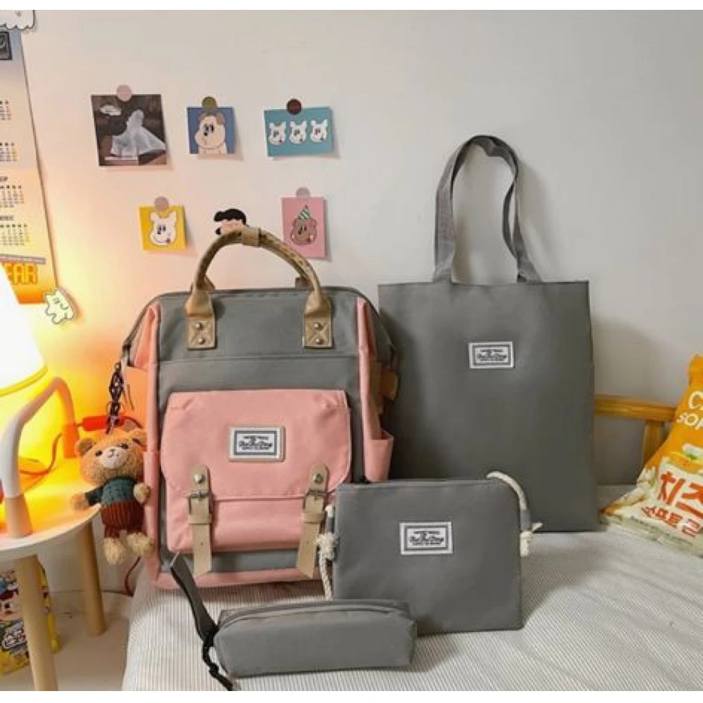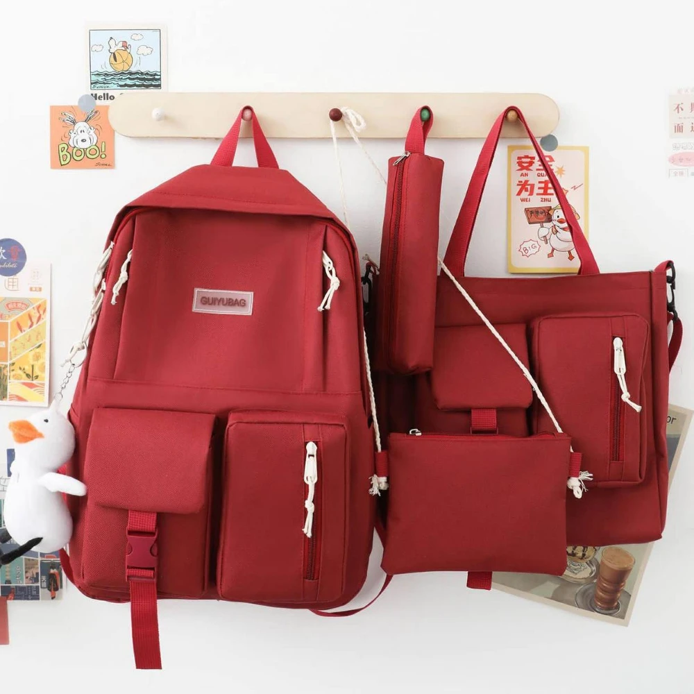 В комплект из 4 и 5 предметов входят рюкзак, клатч, чехол-карандаш, сумка, мешочек (в комплекте 5 предметов). Идеальный дорожный набор, для колледжа, школы и для повседневной жизни. Комплект изготовлен из высококачественной ткани. Легко моется. Есть отделение для ноутбука, папка А4, для телефона, для мелочей, для офиса. Есть боковой скрытый карман для планшета. Очень вместительный рюкзак. Ультралегкий, является отличной альтернативой громоздким школьным портфелям.