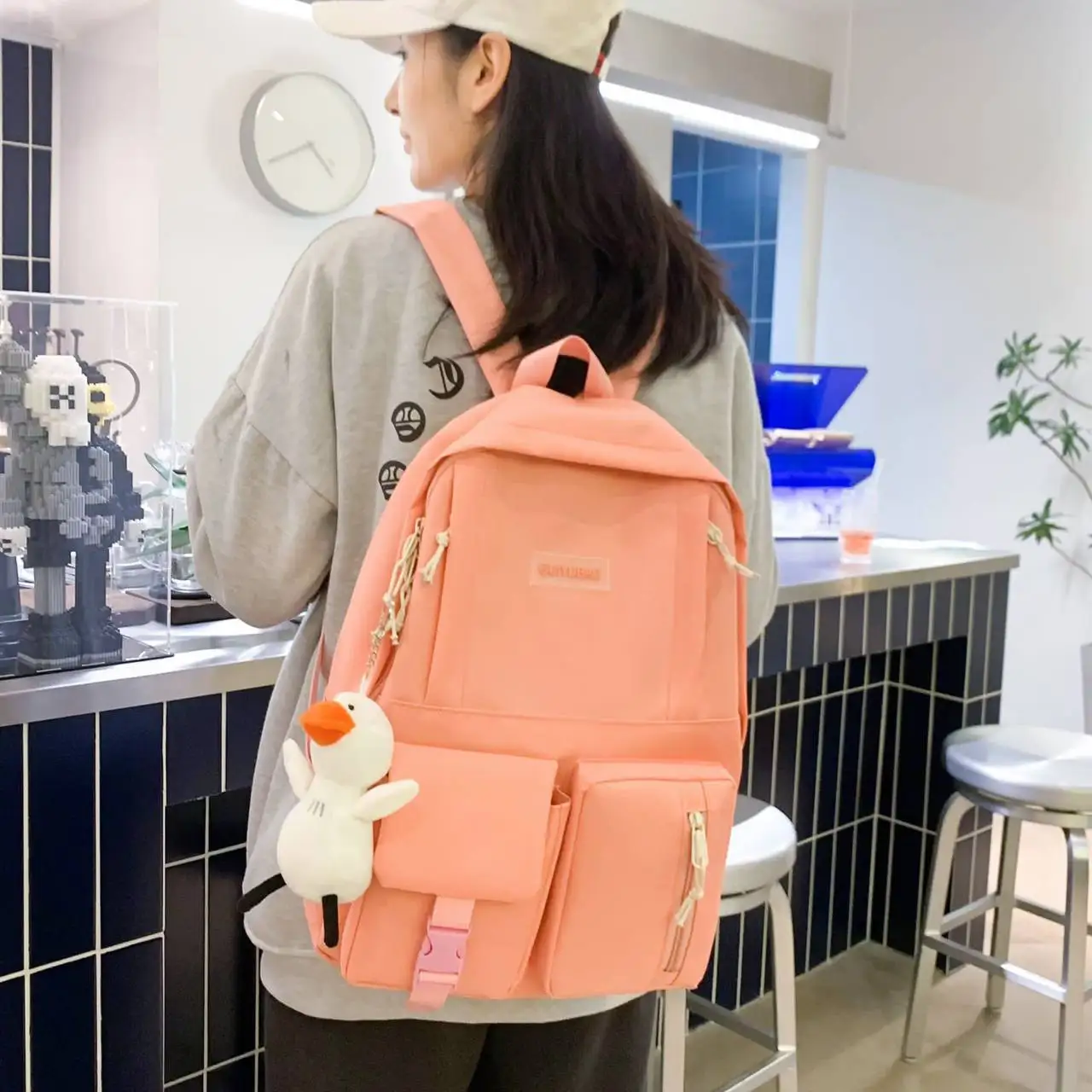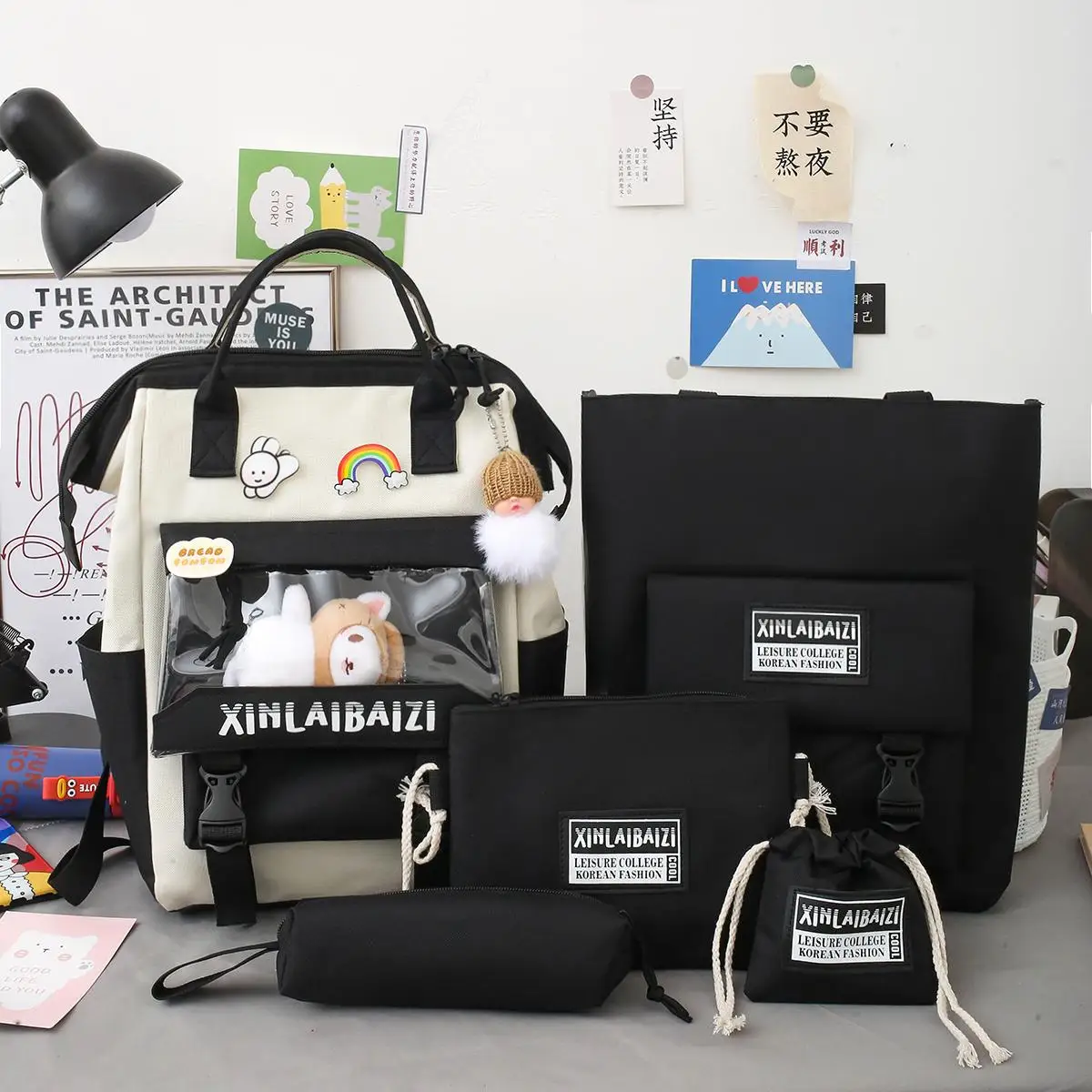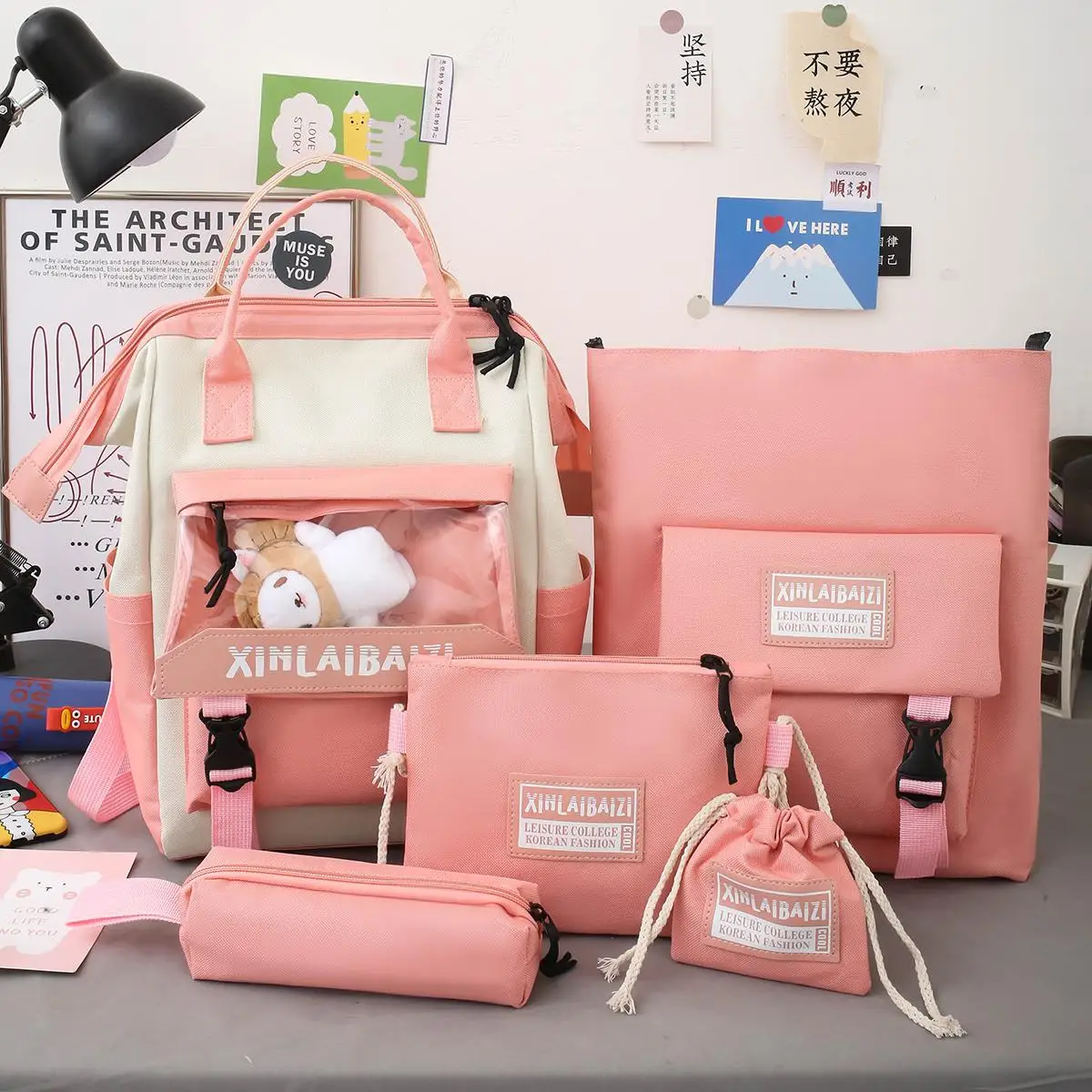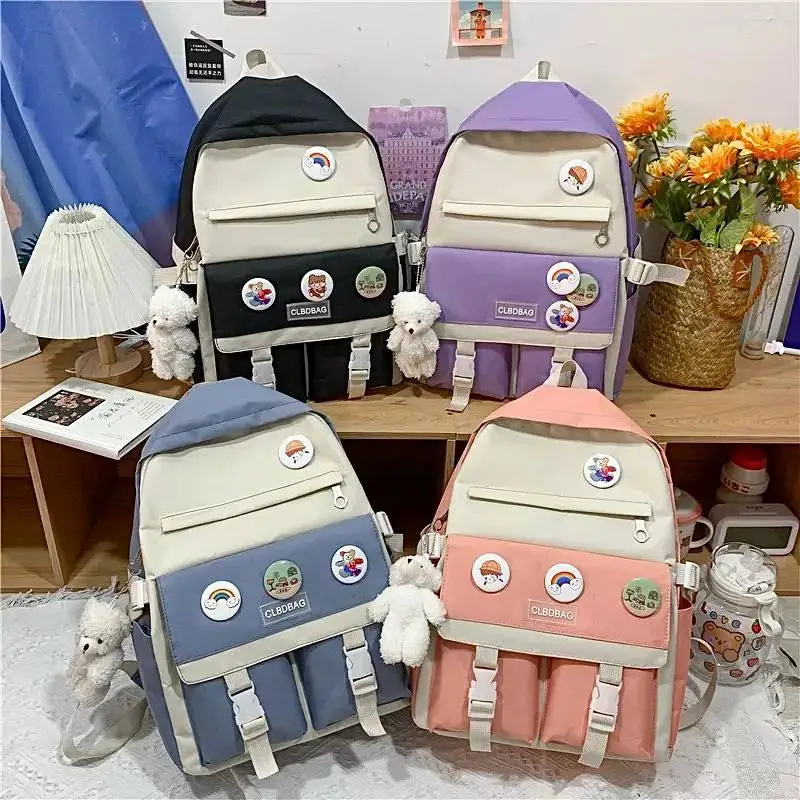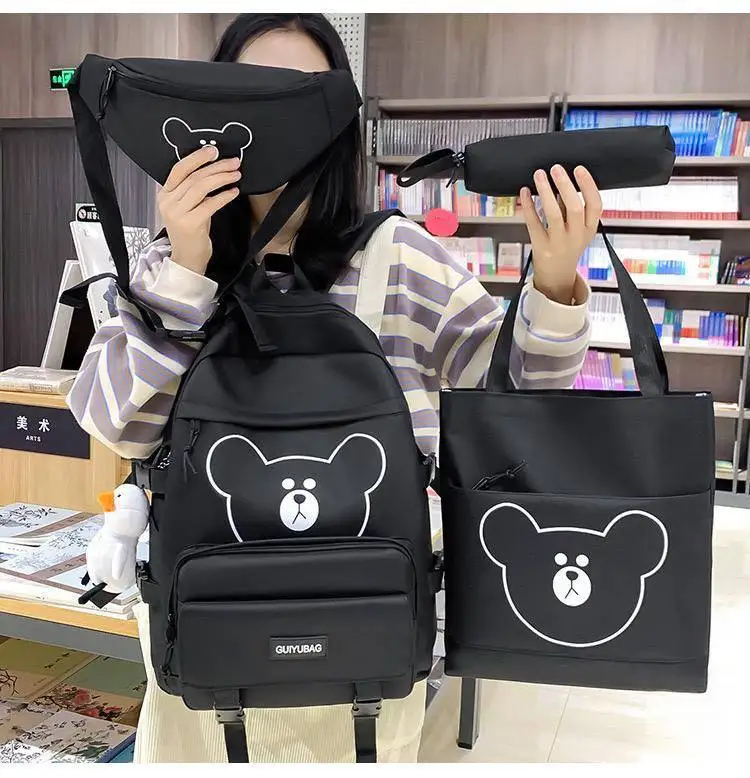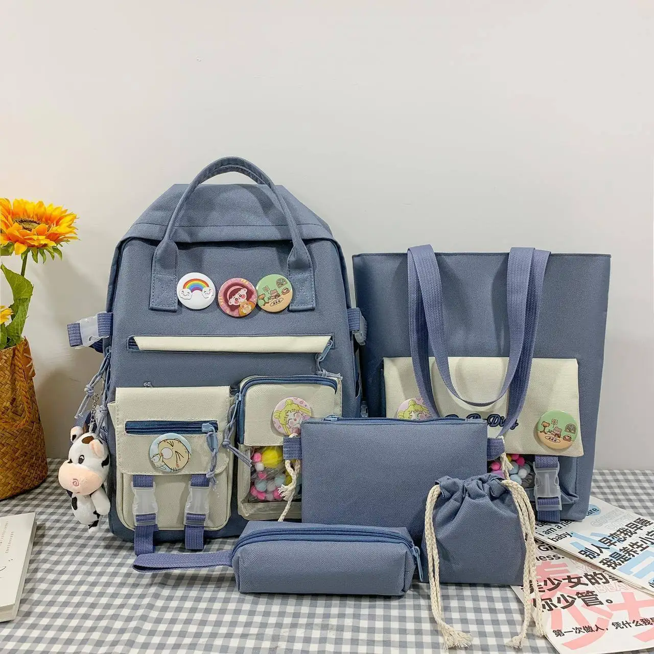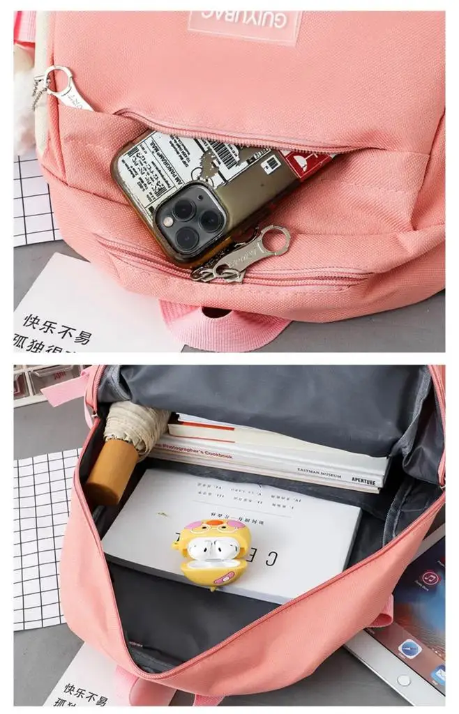 В комплект из 4 и 5 предметов входят рюкзак, клатч, чехол-карандаш, сумка, мешочек (в комплекте 5 предметов). Идеальный дорожный набор, для колледжа, школы и для повседневной жизни. Комплект изготовлен из высококачественной ткани. Легко моется. Есть отделение для ноутбука, папка А4, для телефона, для мелочей, для офиса. Есть боковой скрытый карман для планшета. Очень вместительный рюкзак. Ультралегкий, является отличной альтернативой громоздким школьным портфелям.