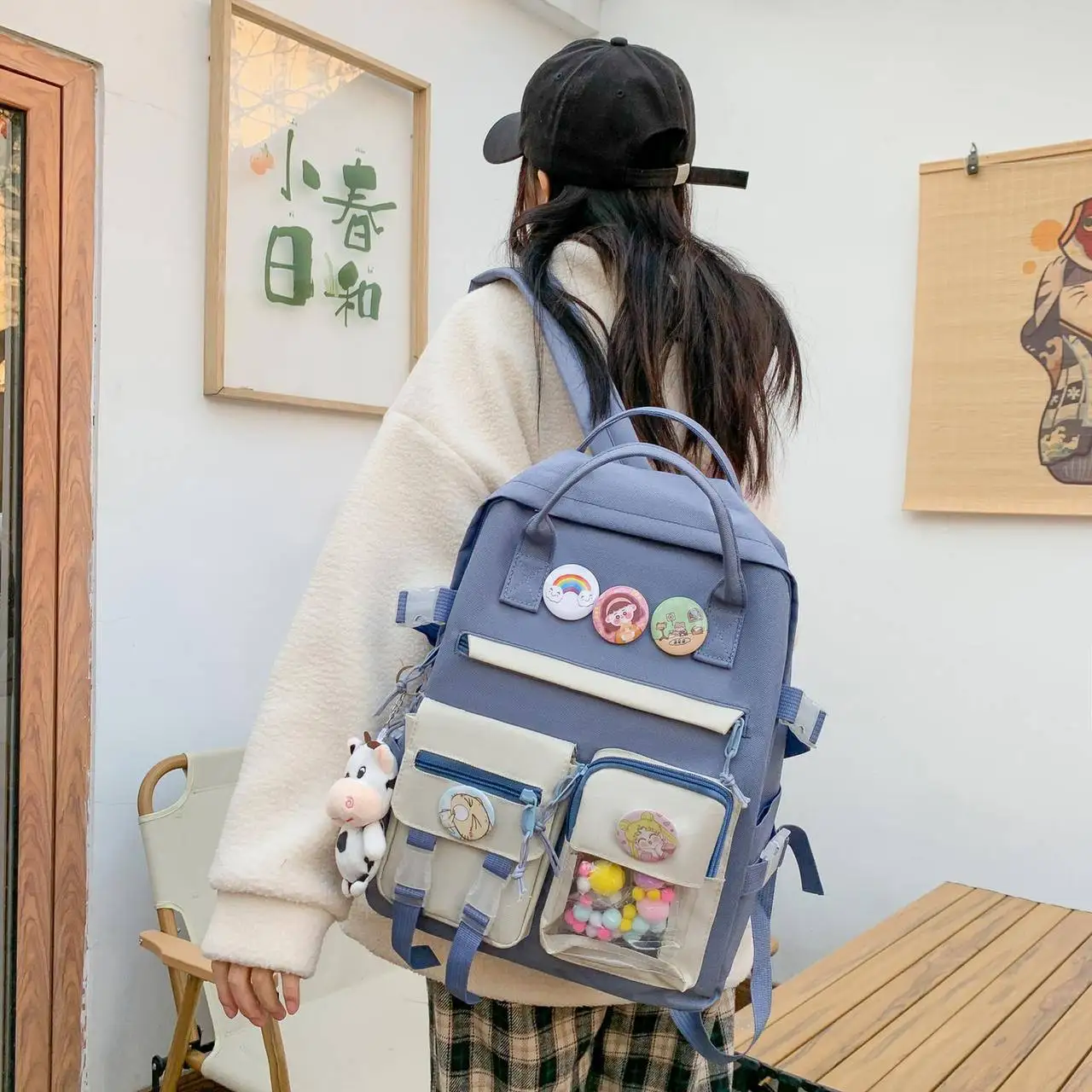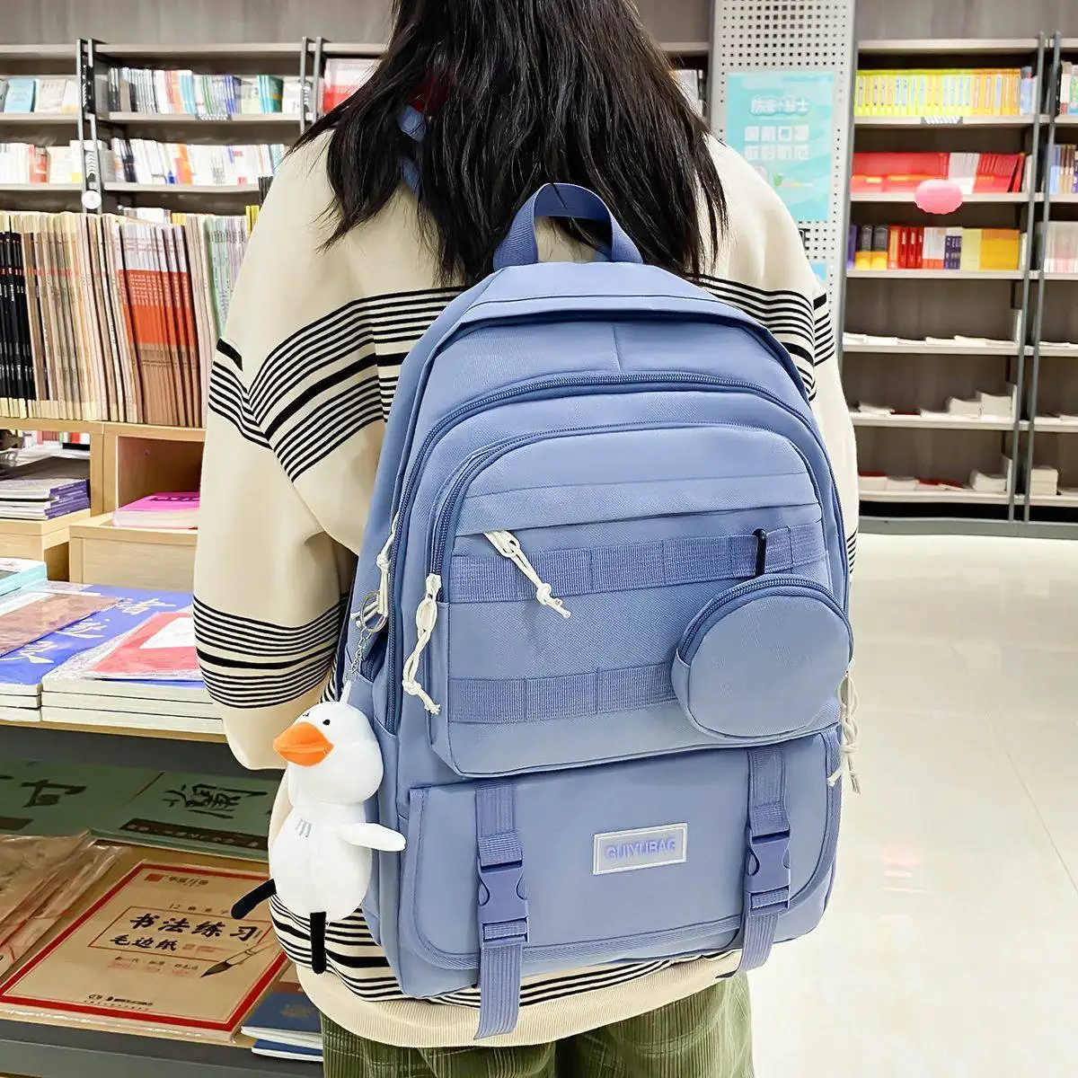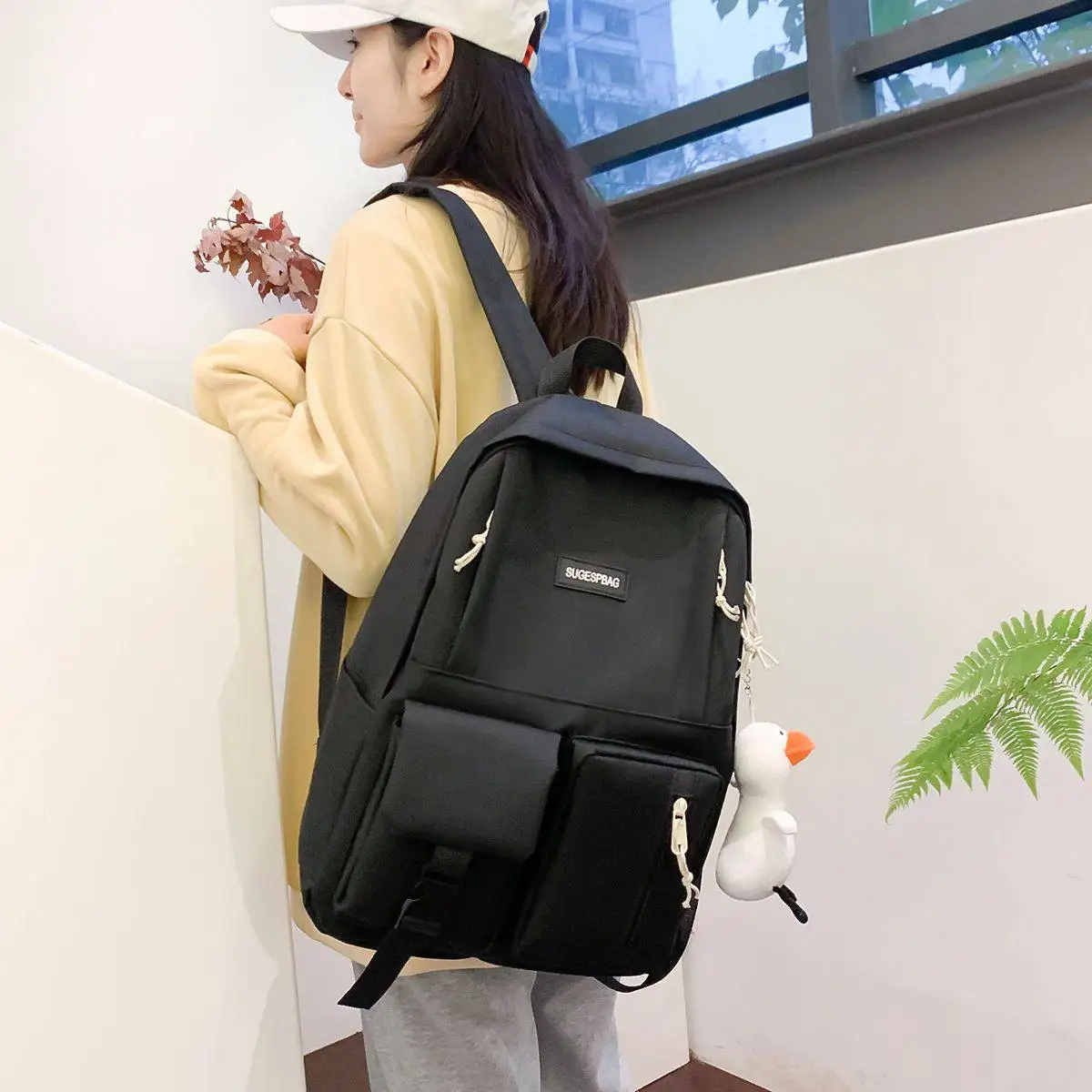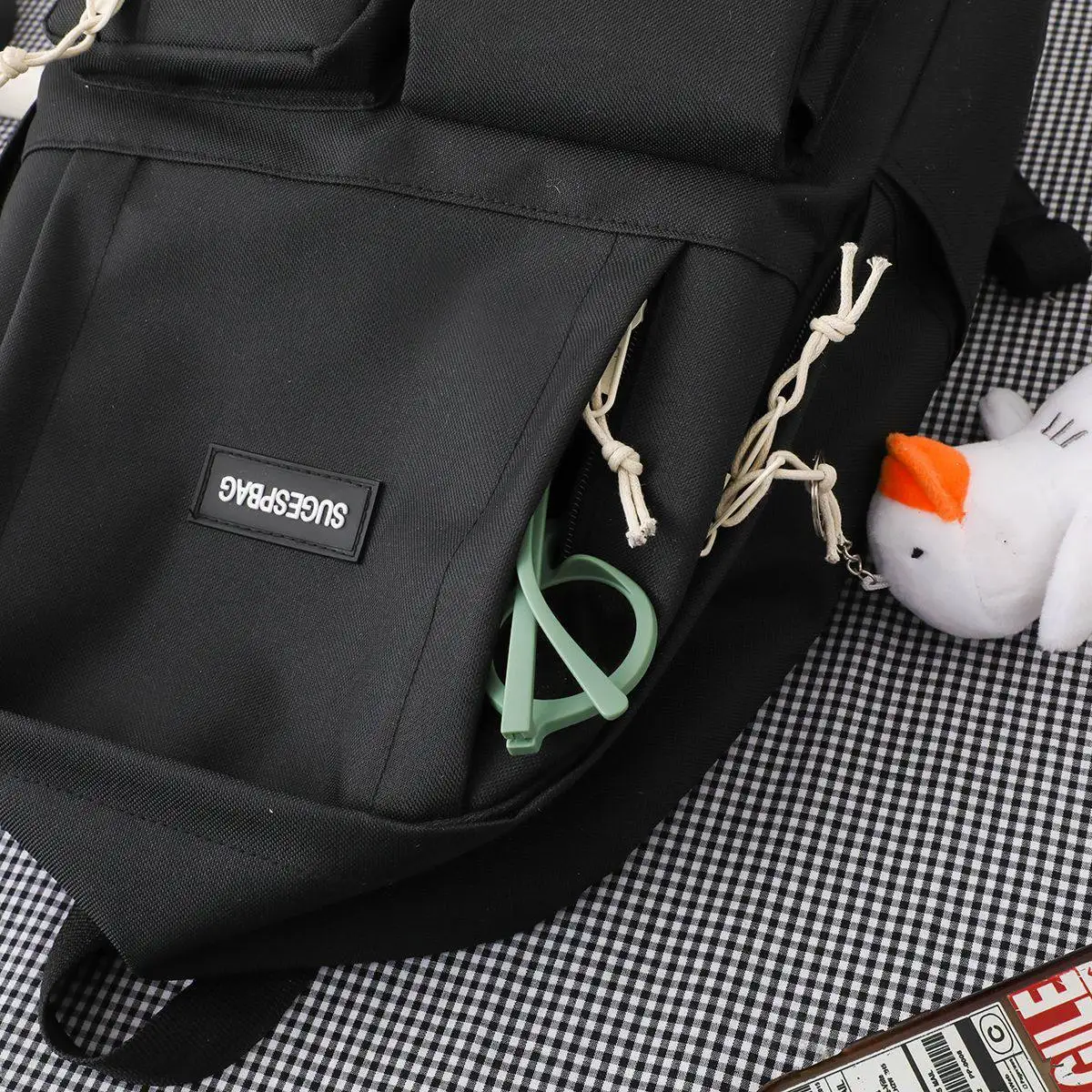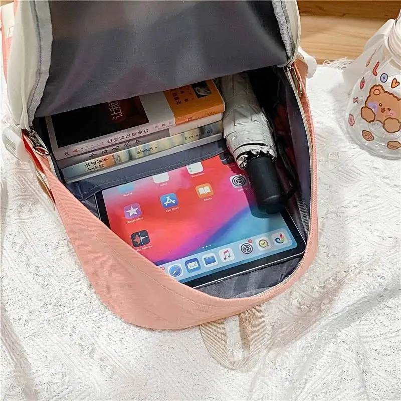 В комплект из 4 и 5 предметов входят рюкзак, клатч, чехол-карандаш, сумка, мешочек (в комплекте 5 предметов). Идеальный дорожный набор, для колледжа, школы и для повседневной жизни. Комплект изготовлен из высококачественной ткани. Легко моется. Есть отделение для ноутбука, папка А4, для телефона, для мелочей, для офиса. Есть боковой скрытый карман для планшета. Очень вместительный рюкзак. Ультралегкий, является отличной альтернативой громоздким школьным портфелям.