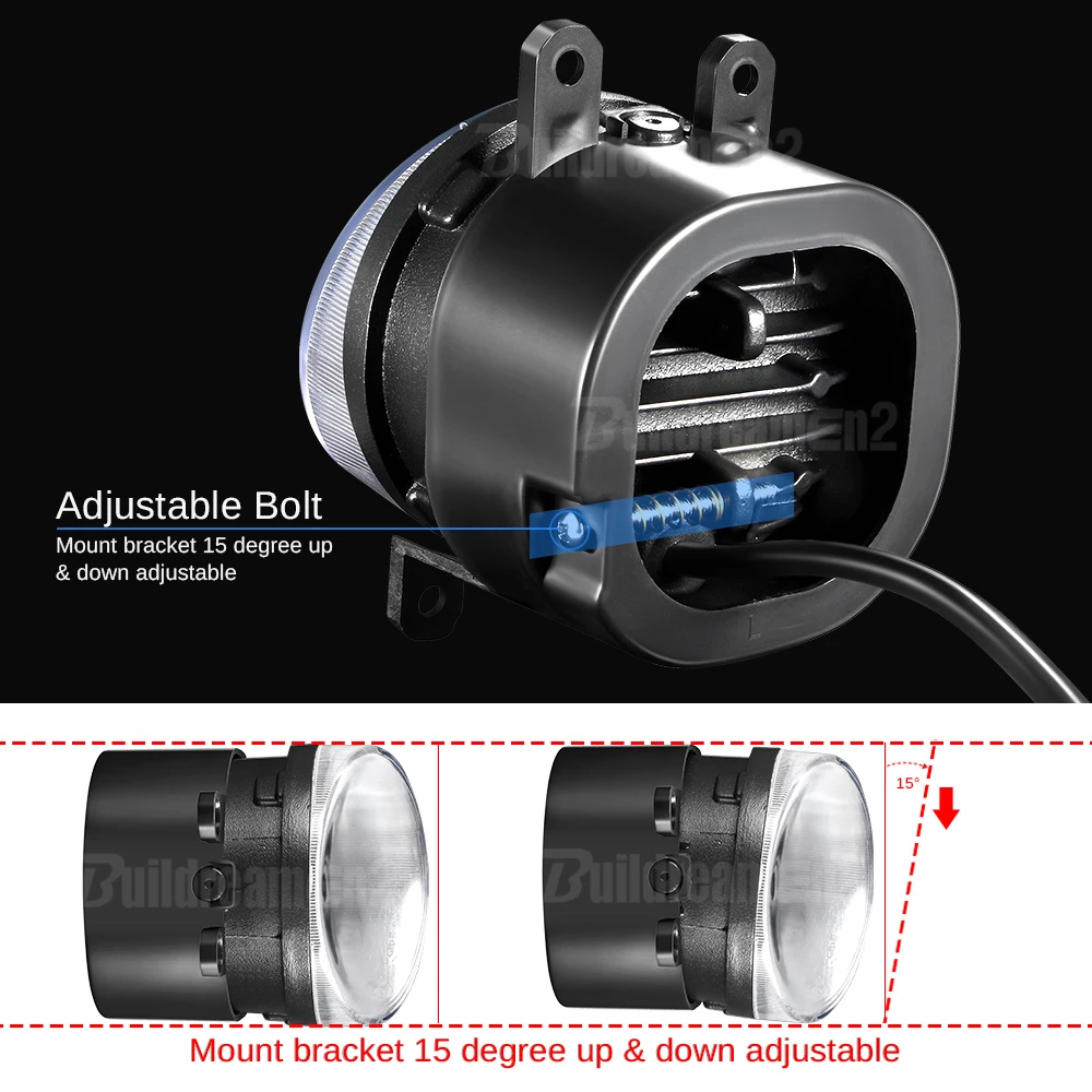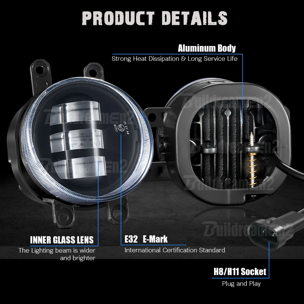 -Высокая яркость: Оснащены 9 шт. 3030 светодиодный бусины, 15W 3000LM каждый светильник, 2 раза больше яркости, чем галогенная противотуманная фара, позволяет вести машину в тумане и дождливую погоду в целости и сохранности.