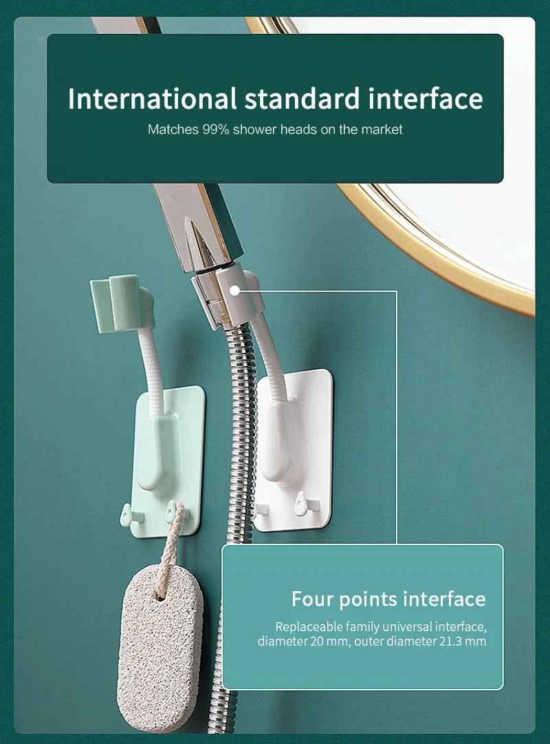 1. Простота установки: без инструментов, без сверления, просто Наклейте пленку на контактную поверхность стеклянной глазури, зеркала, стекла и т. д. Затем установите кронштейн для душа и зафиксируйте его