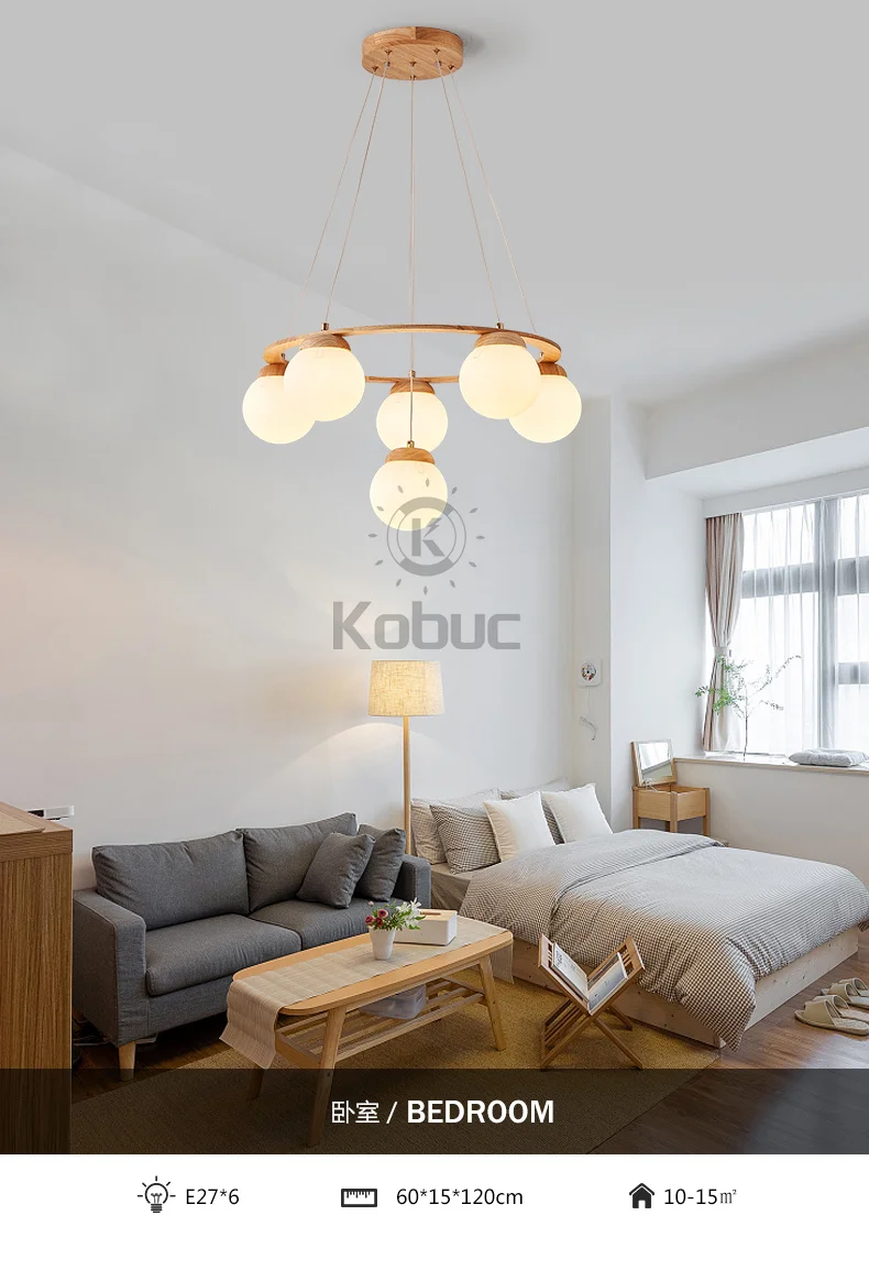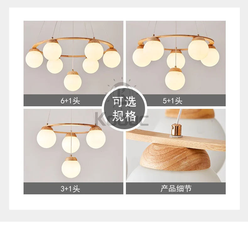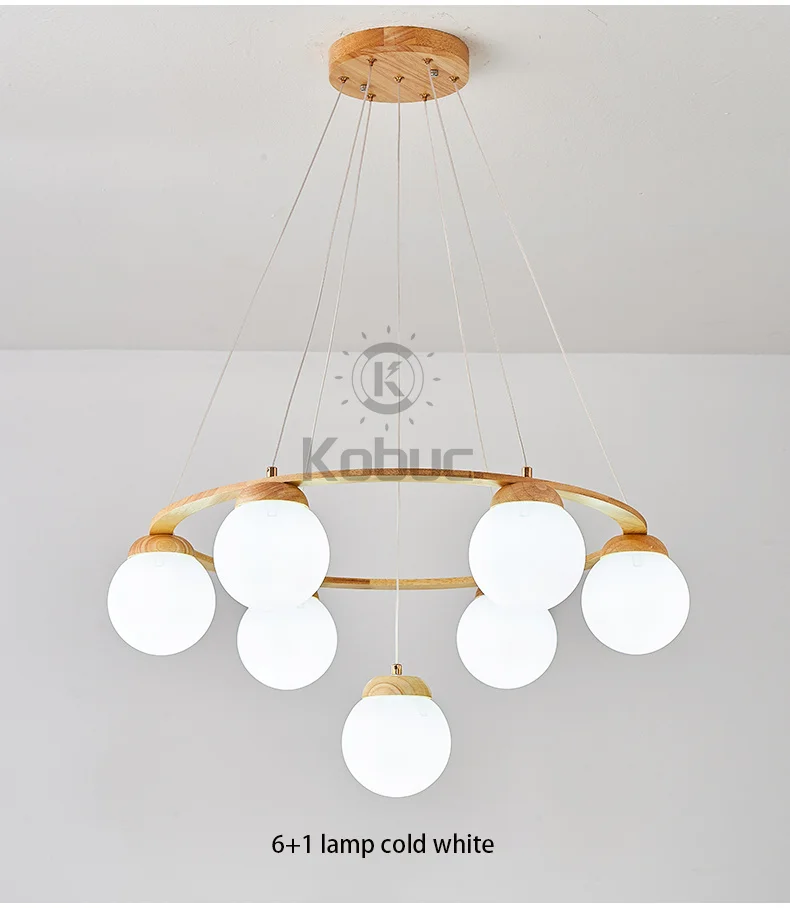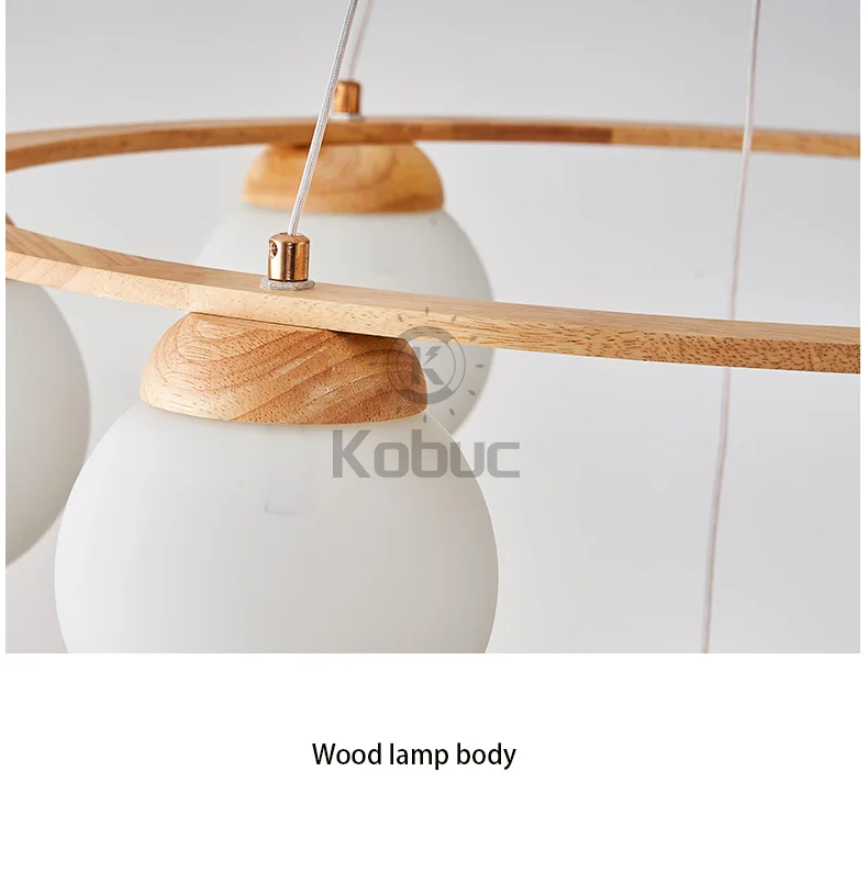 Kobuc скандинавский подвесной светильник для кухни, современная столовая, дерево светодиодный люстра E27 белый стеклянный шар подвесной светильник