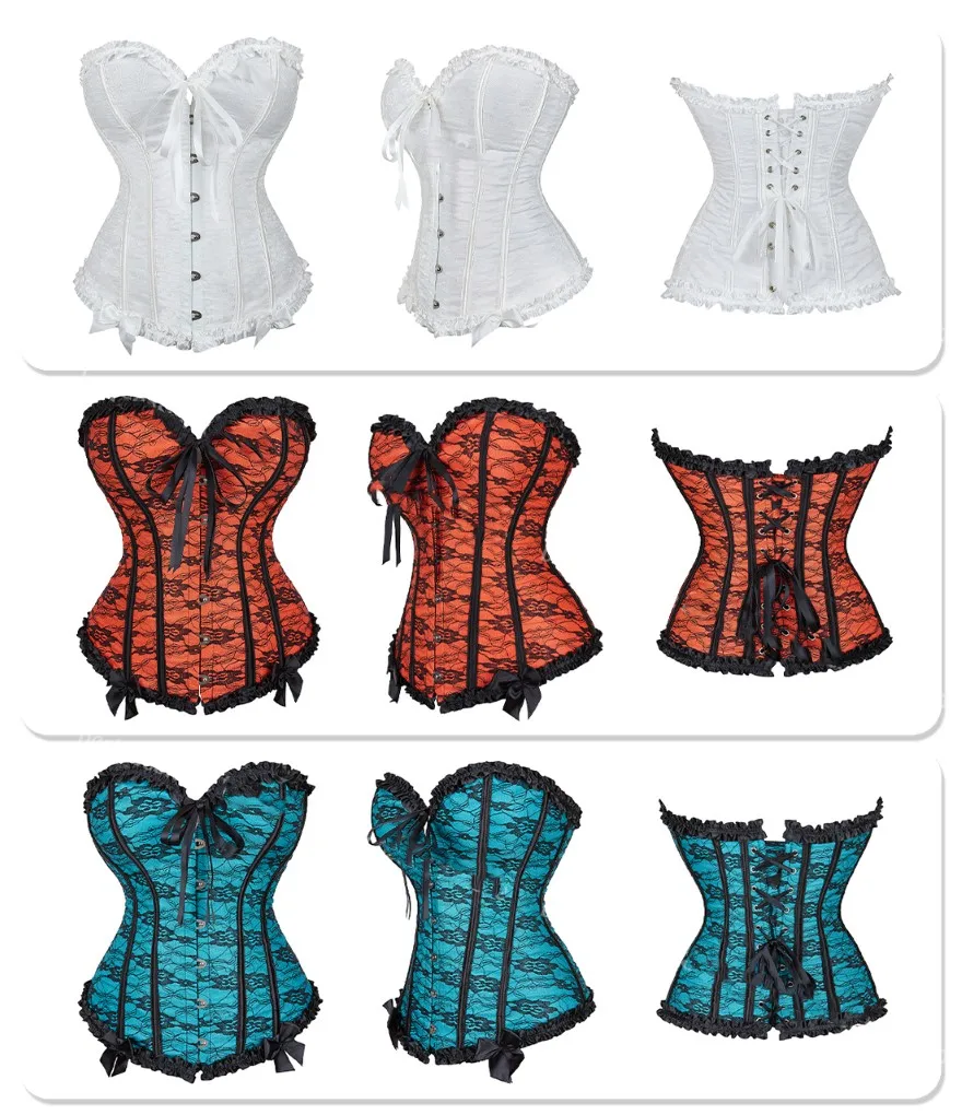 2. Размер корсетов зависит от размера талии, поэтому, пожалуйста, выберите корсет в соответствии с линией талии, а не обхватом груди. Веревка на спине регулируется, пожалуйста, попробуйте настроить ее, чтобы она была более подходящей для вашего тела.