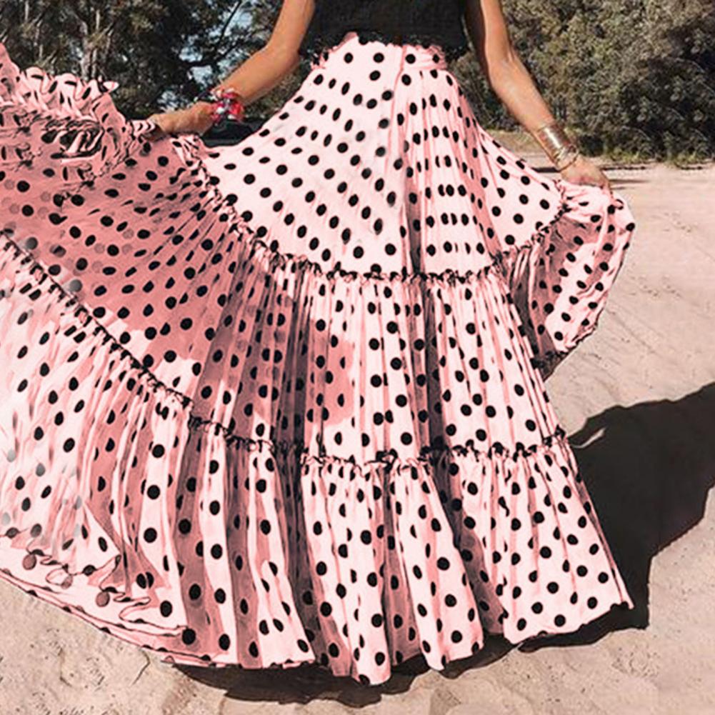 Женская юбка в стиле пэчворк, плиссированная разноцветная длинная юбка в горошек для праздника