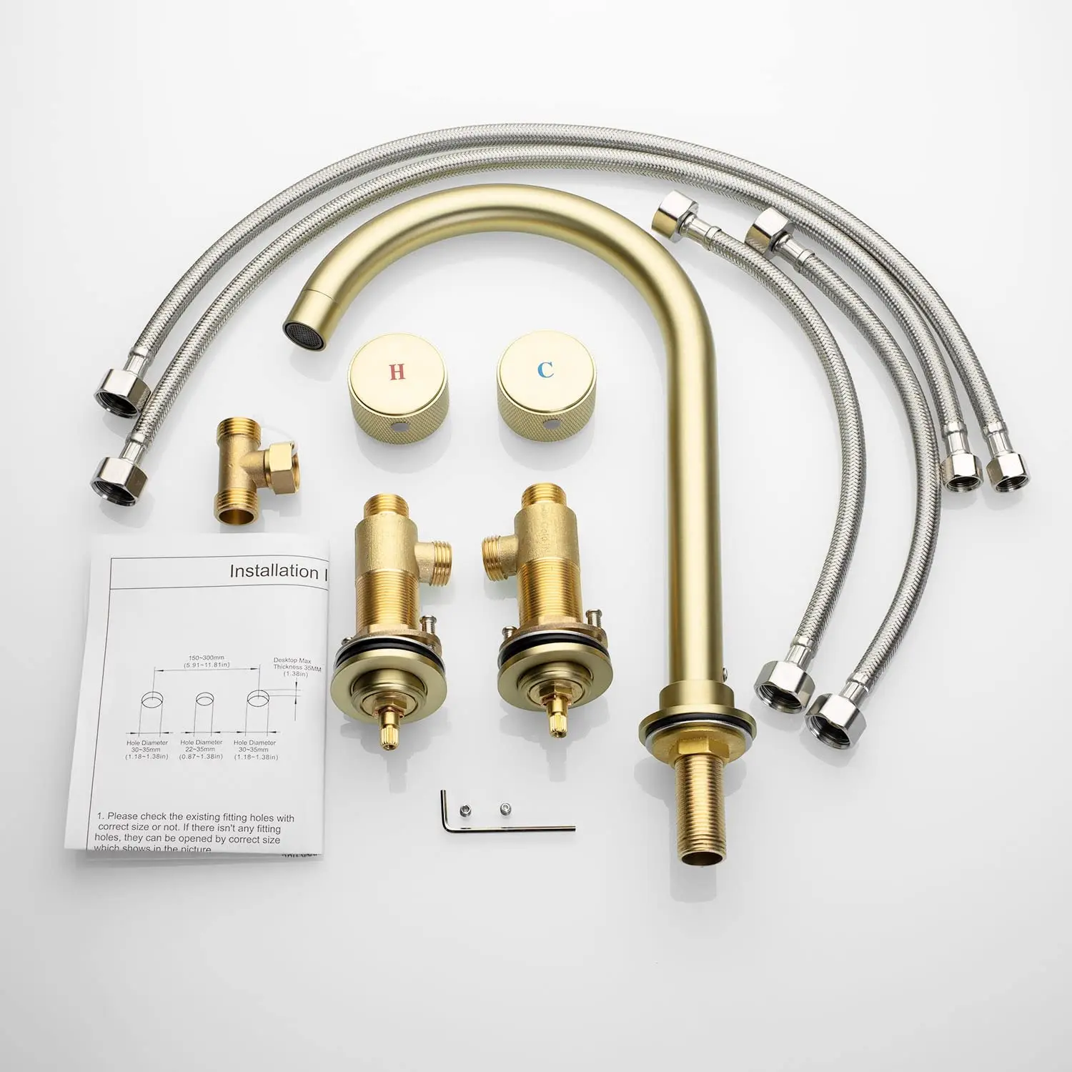 Роскошный латунный кран для ванной комнаты с креплением на стол, рукоятка с двойными ручками, смеситель для раковины, 3 отверстия, матовый золотой