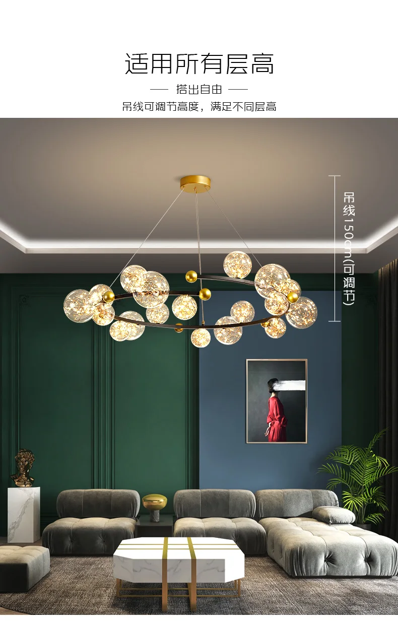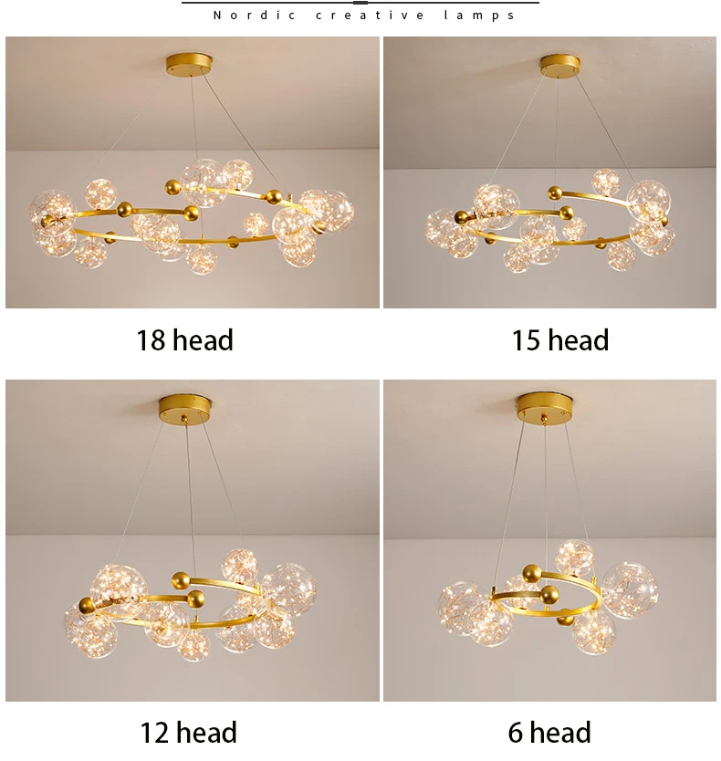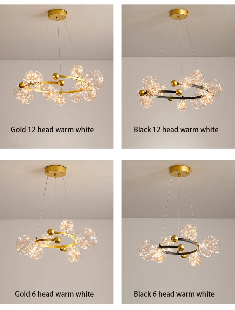 Kobuc Затемняющая люстра с круговым освещением, прозрачный стеклянный шар, Потолочный подвесной светильник, Романтическая звезда, декор для гостиной, светодиодное освещение 220 В