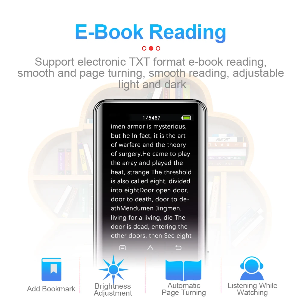 7. Чтение электронных книг, поддержка чтения в форматах электронных книг, таких как электронный TXT, плавное вращение страницы, плавное чтение, добавление закладок, автоматическое поворот страницы, прослушивание и просмотр, регулируемая яркость и темнота.