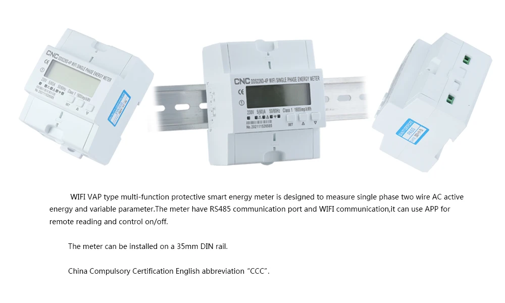 Счетчик предназначен для измерения однофазной двухпроводной активной энергии переменного тока и переменных параметров, таких как жилое, полезное и промышленное применение. Он может удаленно читать из Wi-Fi связи. Это длинный счетчик жизни с преимуществом высокой стабильности, высокой нагрузкой, низкой потерей мощности и небольшого объема.