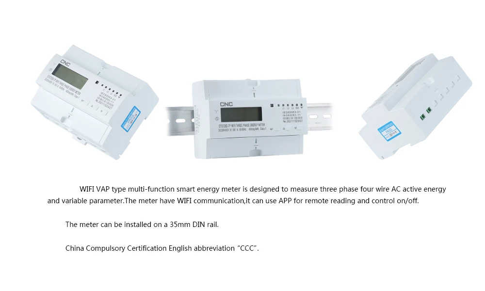 WIFI VAP Тип Многофункциональный Умный измеритель энергии предназначен для измерения трехфазного четырехпроводного переменного тока активной энергии и переменных параметров. Счетчик имеет Wi-Fi связь, он может использовать приложение для удаленного чтения и управления вкл/выкл. Все его функции соответствуют относительной Технические требования для calss 1 трехфазный ватт счетчик часов в IEC62053-21 и его правила передачи данных подчиняются требованию WIFI 802,11 b/g/n. Это длинный счетчик жизни с преимуществом высокой стабильности, высокой нагрузочной способностью, низкой потери мощности и малого Объем.