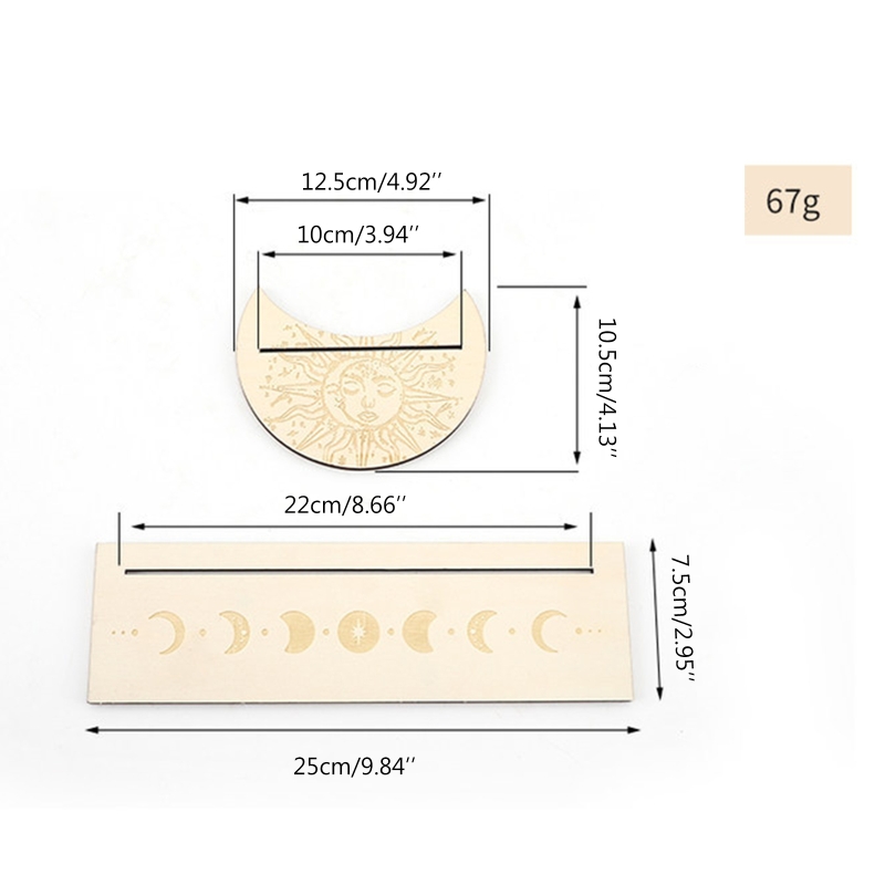 Столешница в форме Луны размером около 8,66x4,13 дюймов, прямоугольная стойка для карт Таро размером около 9,84x2,95 дюйма.