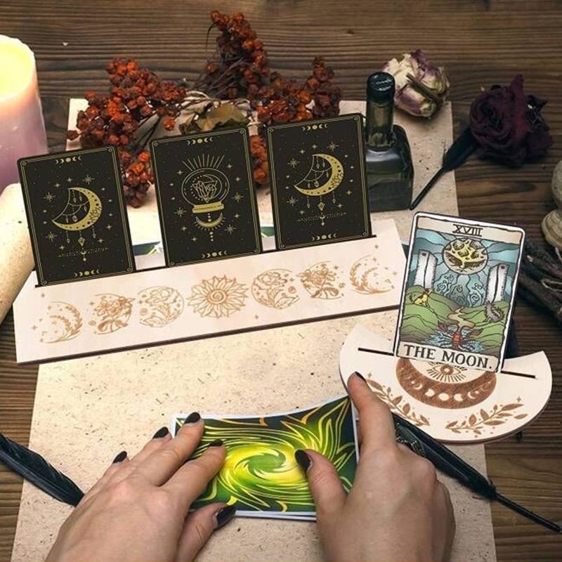 Эти деревянные держатели карт Таро разработаны в 2 различных формах, прямоугольных формах и форме Луны, напечатаны с некоторыми лунами и более, деликатные и красивые.