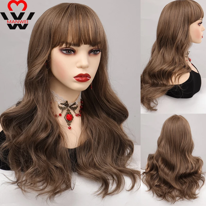 MANWEI длинные волнистые синтетические парики с челкой для женщин косплей волос Лолита