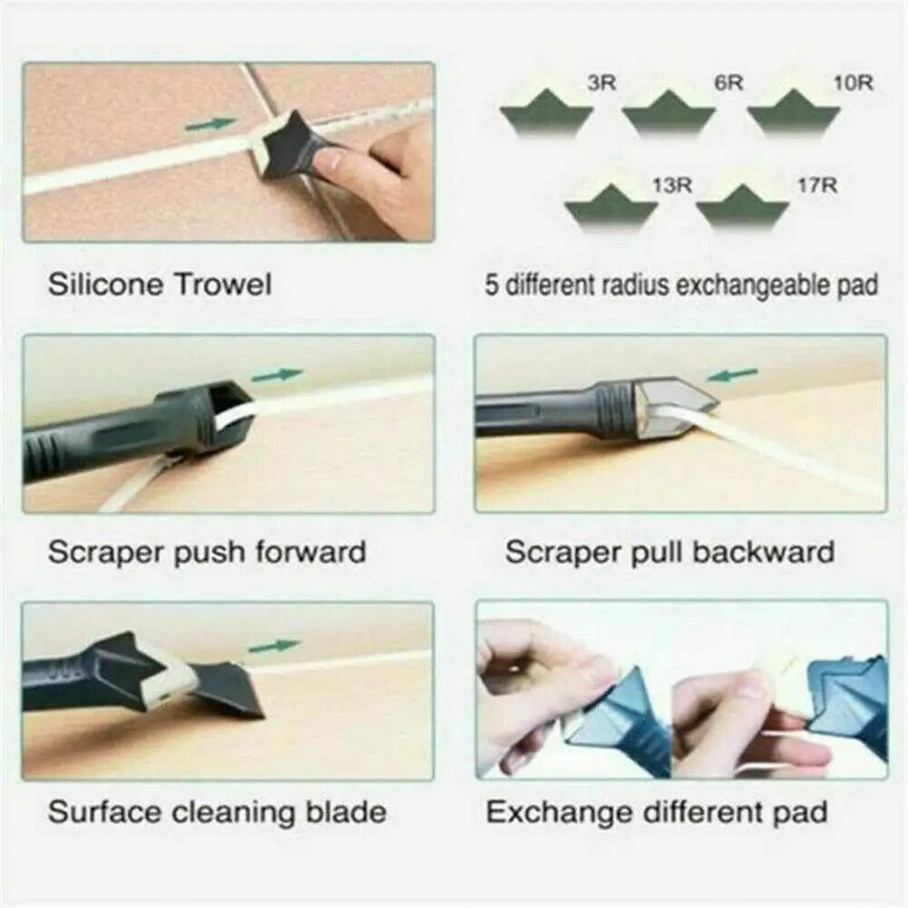 5. Использование: угловой скребок, клей для стекла, скребок для остатков клея, инструмент для ремонта швов