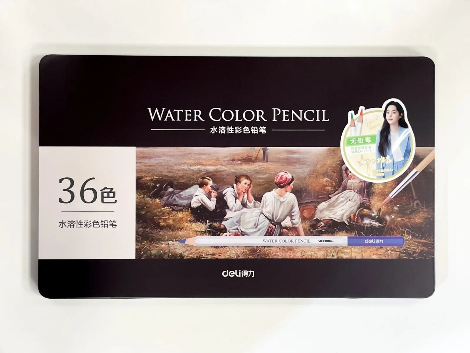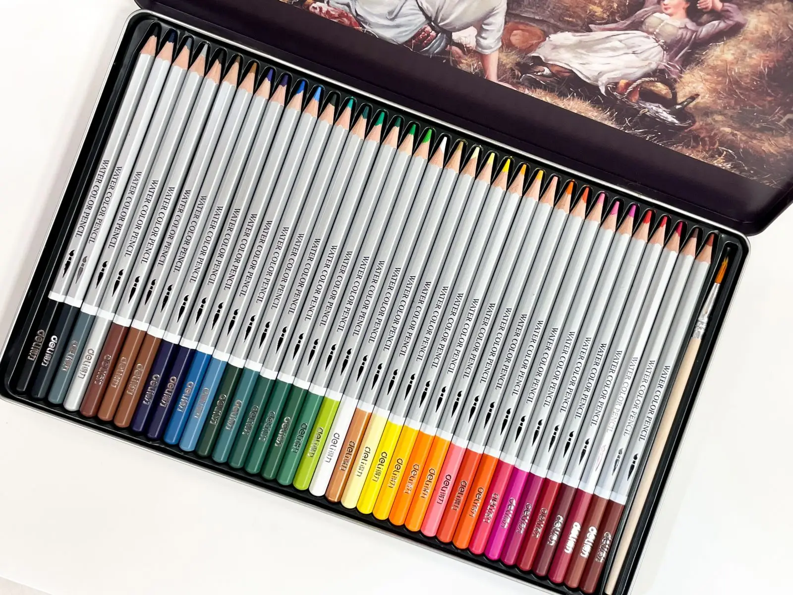 Акварельные карандаши набор в подарочной металлической коробке идет в комплекте с кистью.