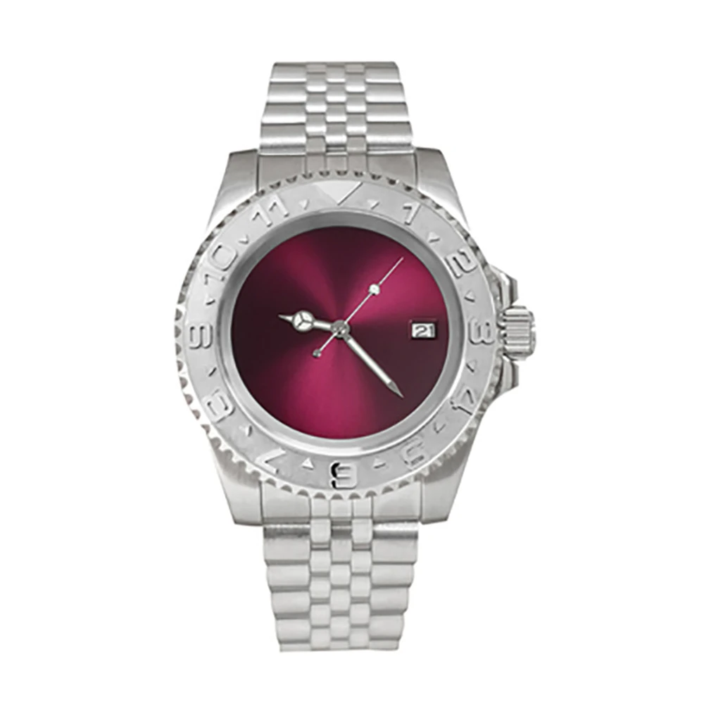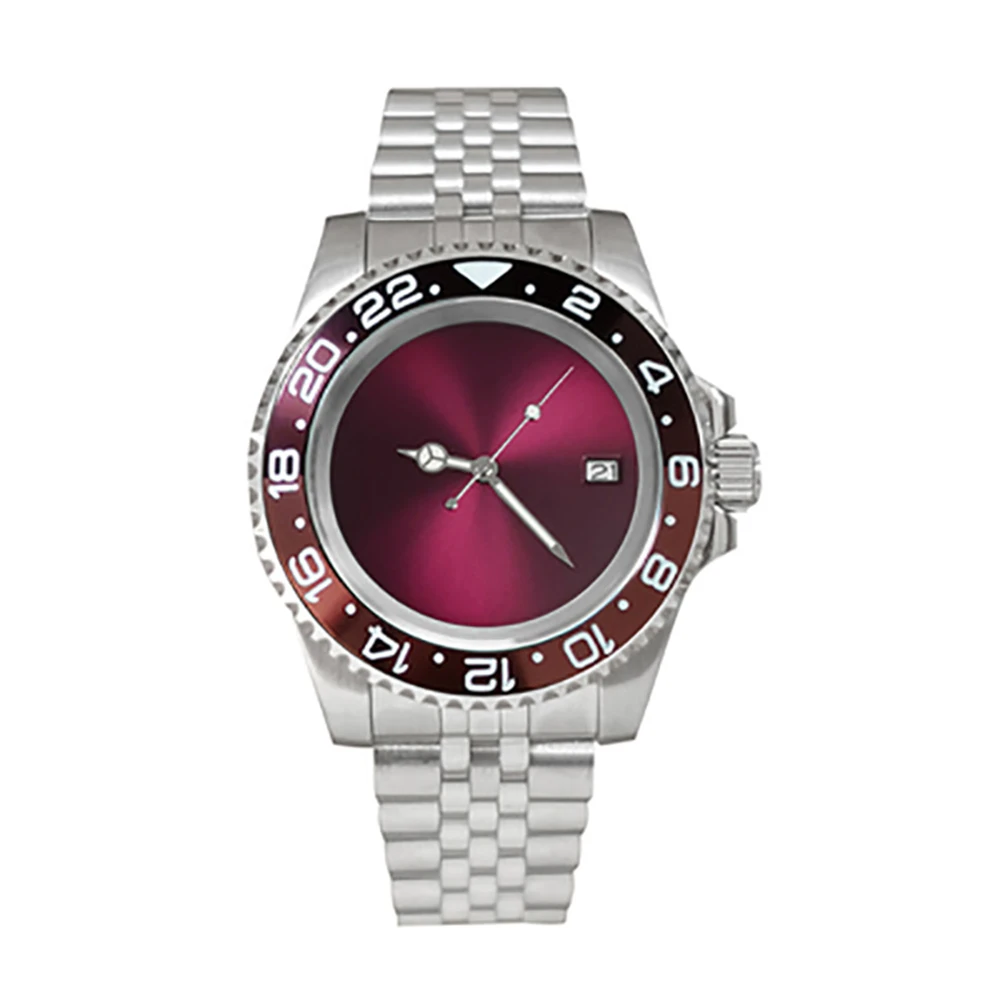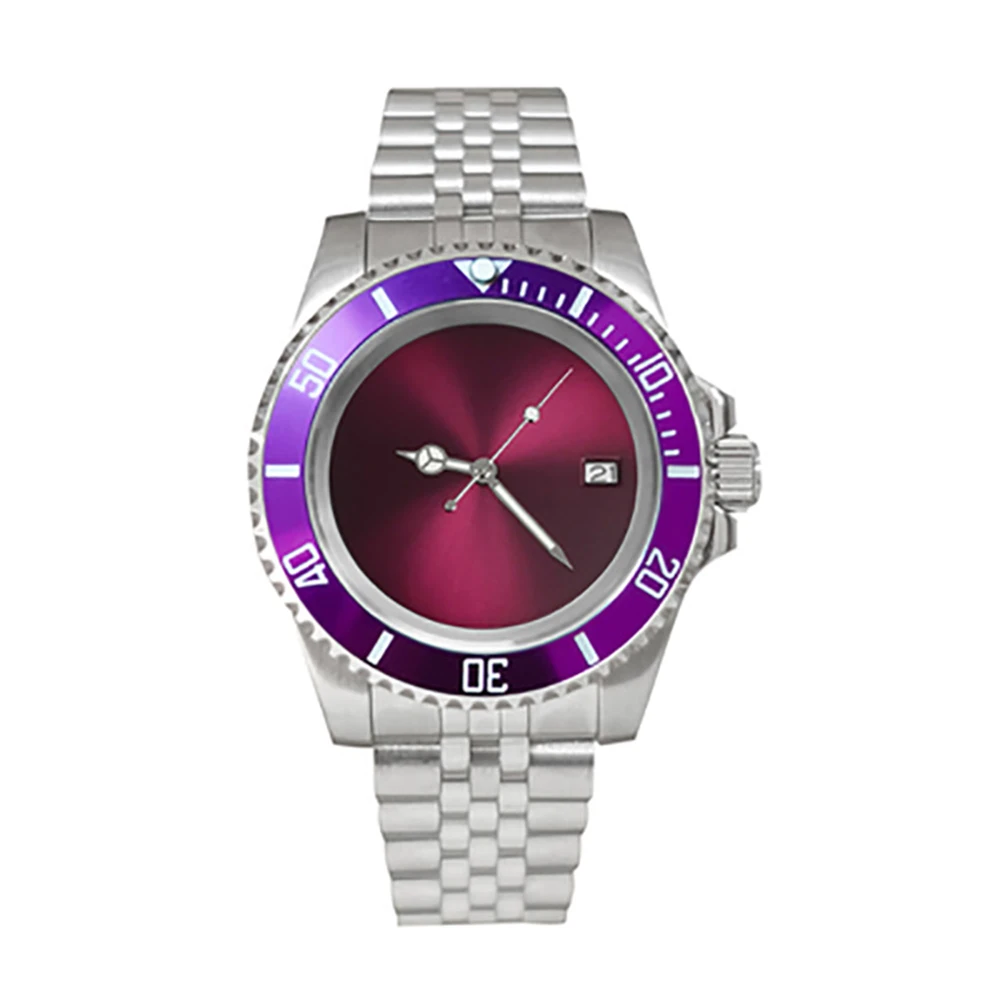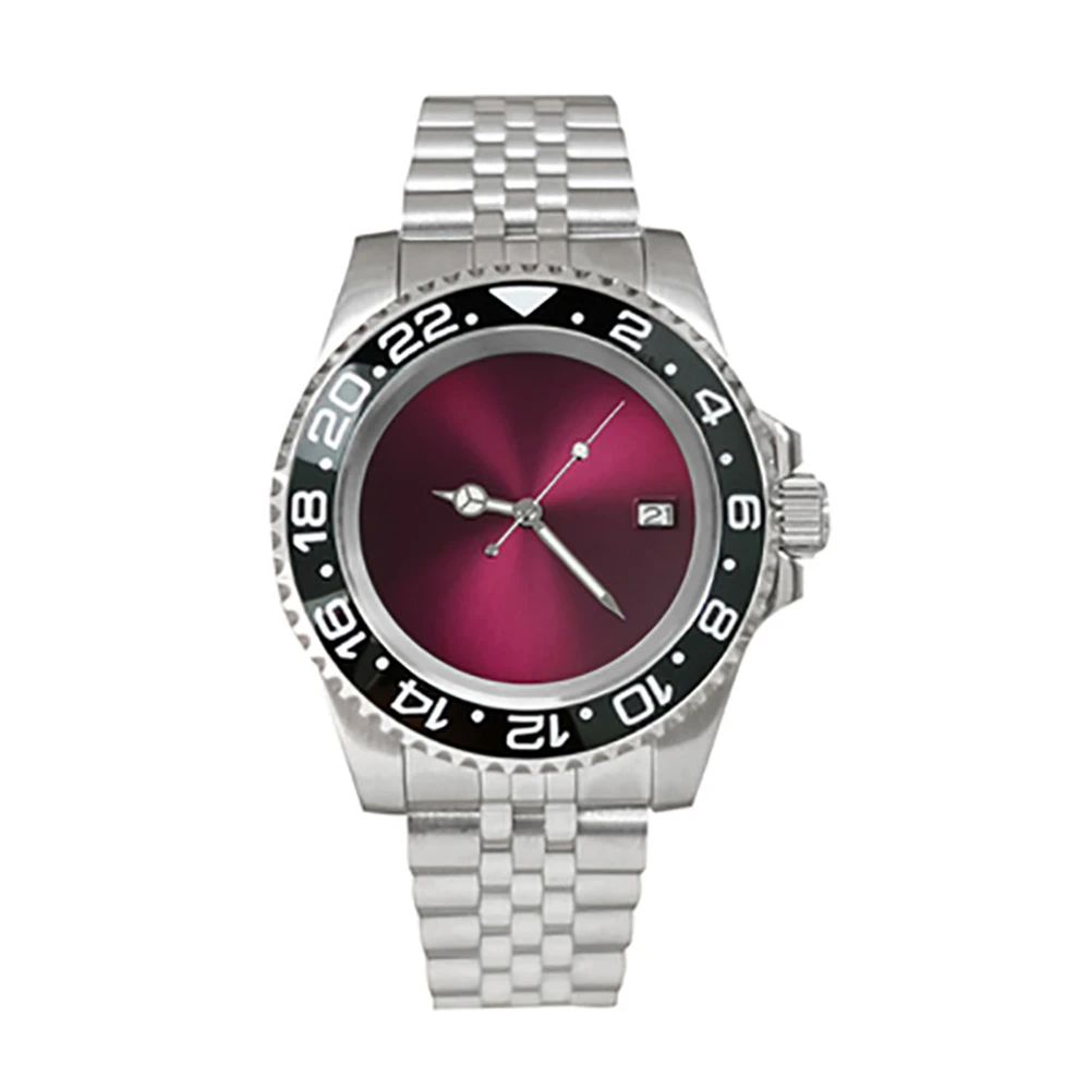 Один Canlendar NH35 двигаться Для мужчин t Для мужчин часы 40 мм из нержавеющей стали 316L чехол 38 мм SUB/GMT ободок юбилей группа сапфир Стекло 28,5 мм фиолетовый Циферблат