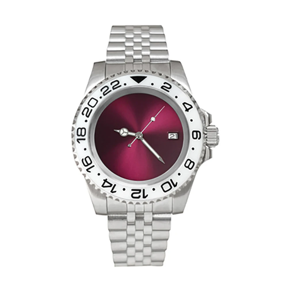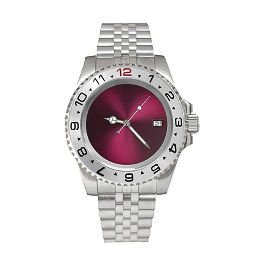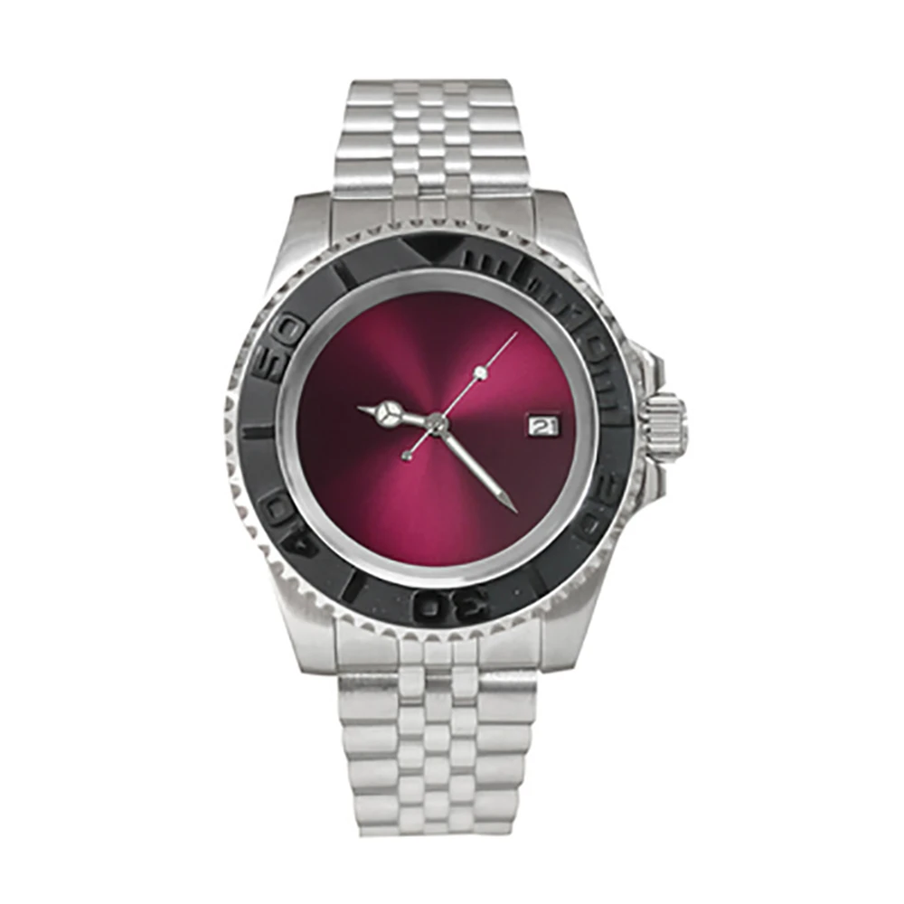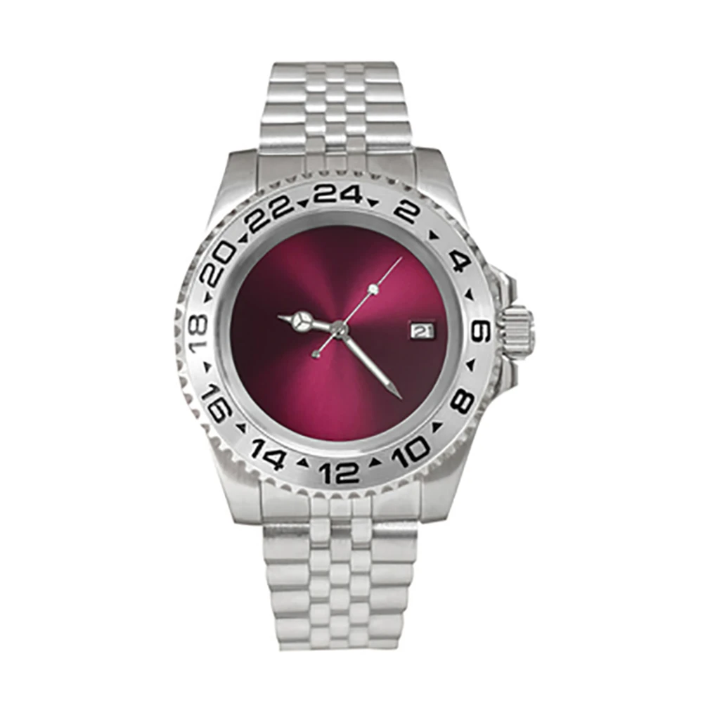 Один Canlendar NH35 двигаться Для мужчин t Для мужчин часы 40 мм из нержавеющей стали 316L чехол 38 мм SUB/GMT ободок юбилей группа сапфир Стекло 28,5 мм фиолетовый Циферблат