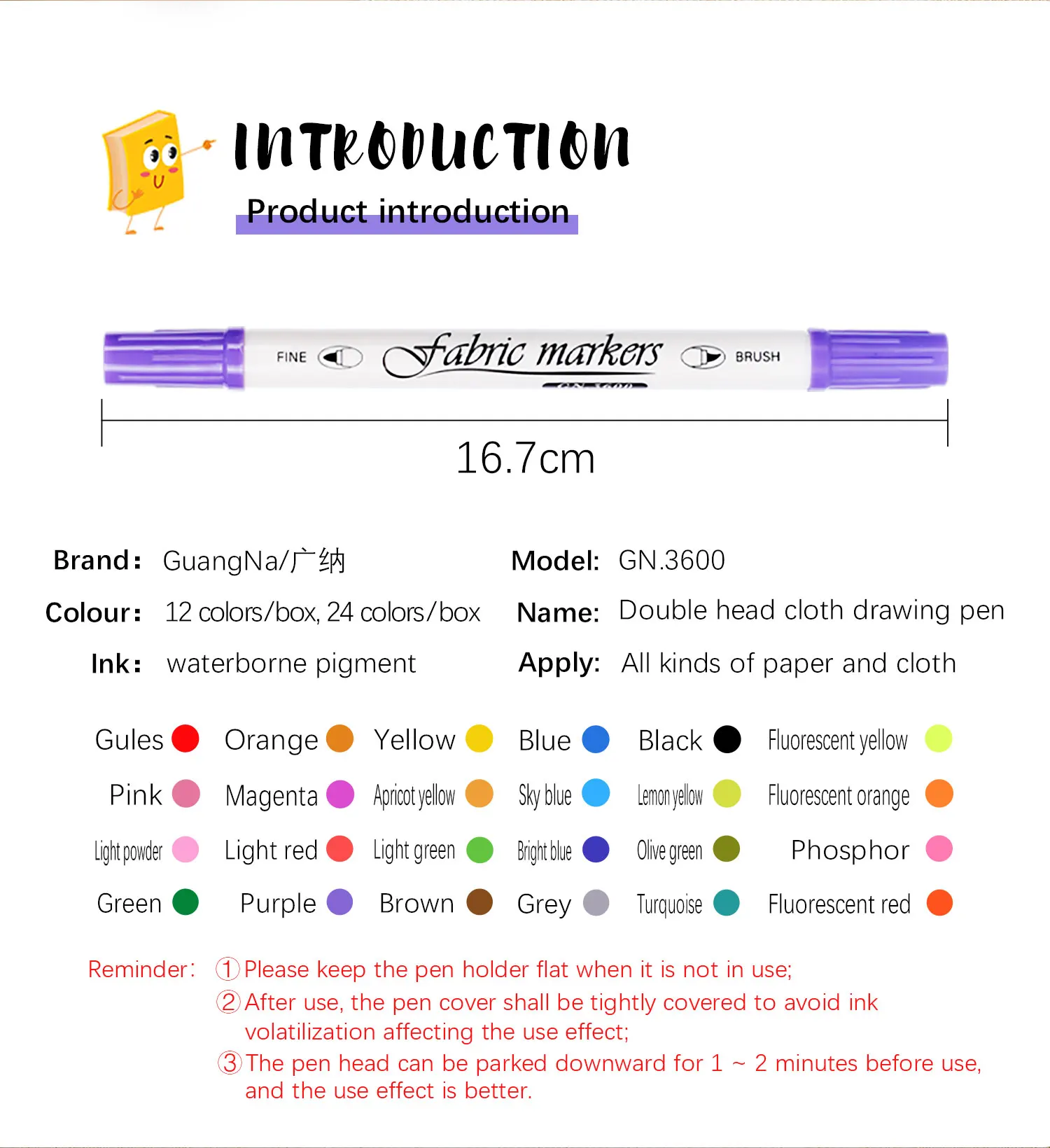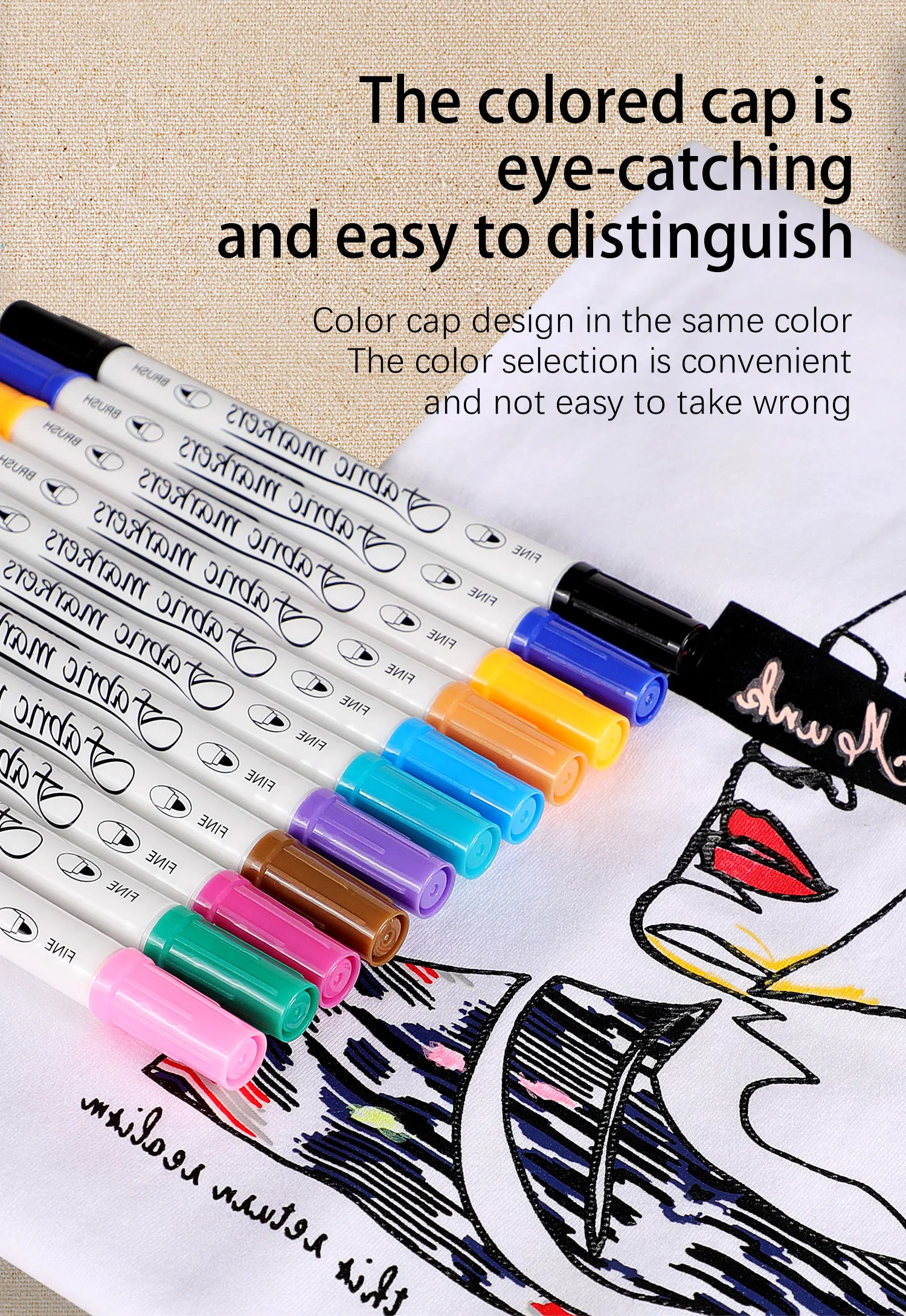 Хорошие и широкие советы: ручки из ткани поставляются с тонким наконечником и широким наконечником. Тонкий наконечник может обеспечить точный контроль для эскизов и детализации, в то время как широкий наконечник используется для смелой окраски. Подходит для письма, рисования или любых проектов «сделай сам» на ткани и бумаге.