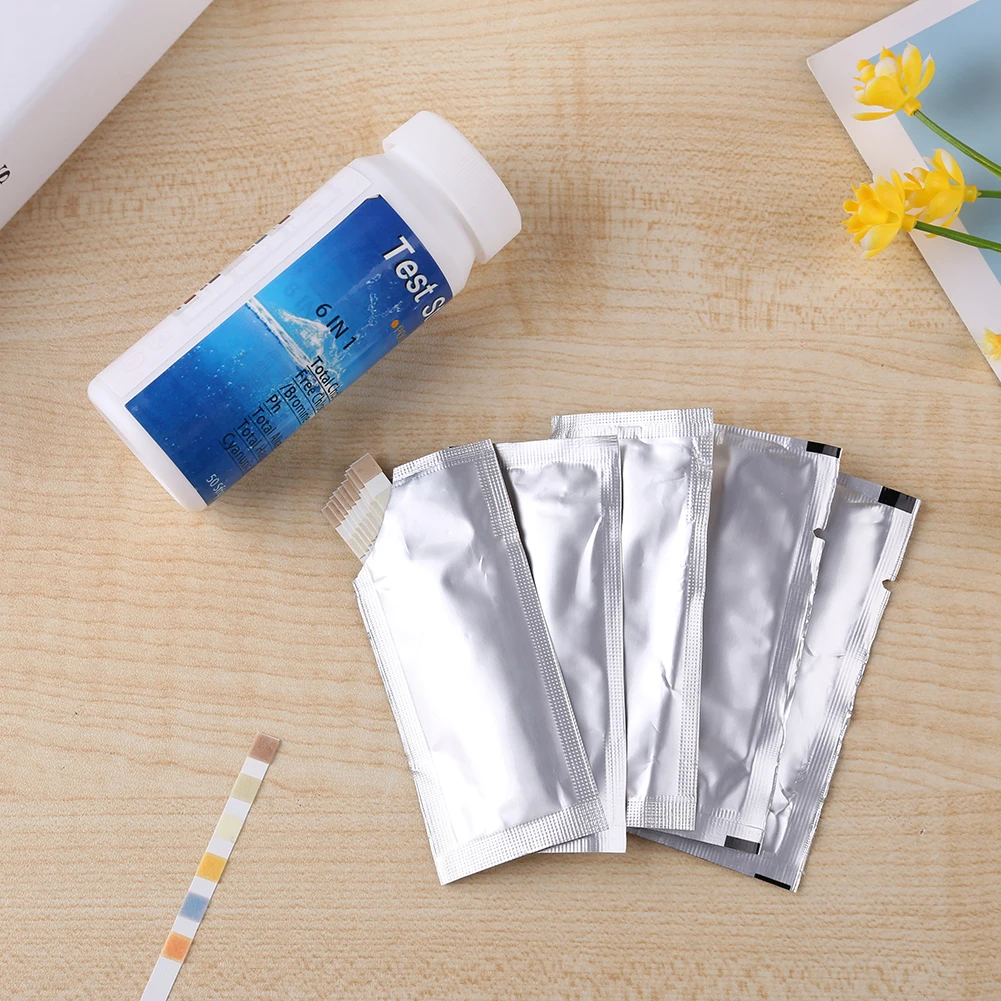 50 шт. 6-в-1 качества воды тест-полосок, используется для тестирования рН, хлор и общая Щелочность в воде колориметрией.