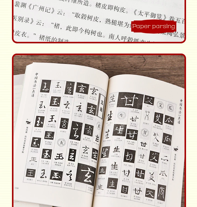 * В копировальной книге используется метод печати оригинальной надписи. Однако древняя стела прошла через vicissitudes. В течение длительного времени из-за различных природных и социальных факторов, таких как климат, география, война и т. д., древняя стела неизбежно будет выглядеть размытой и неполной. Поэтому белые пятна обычно появляются на печатной надписи.