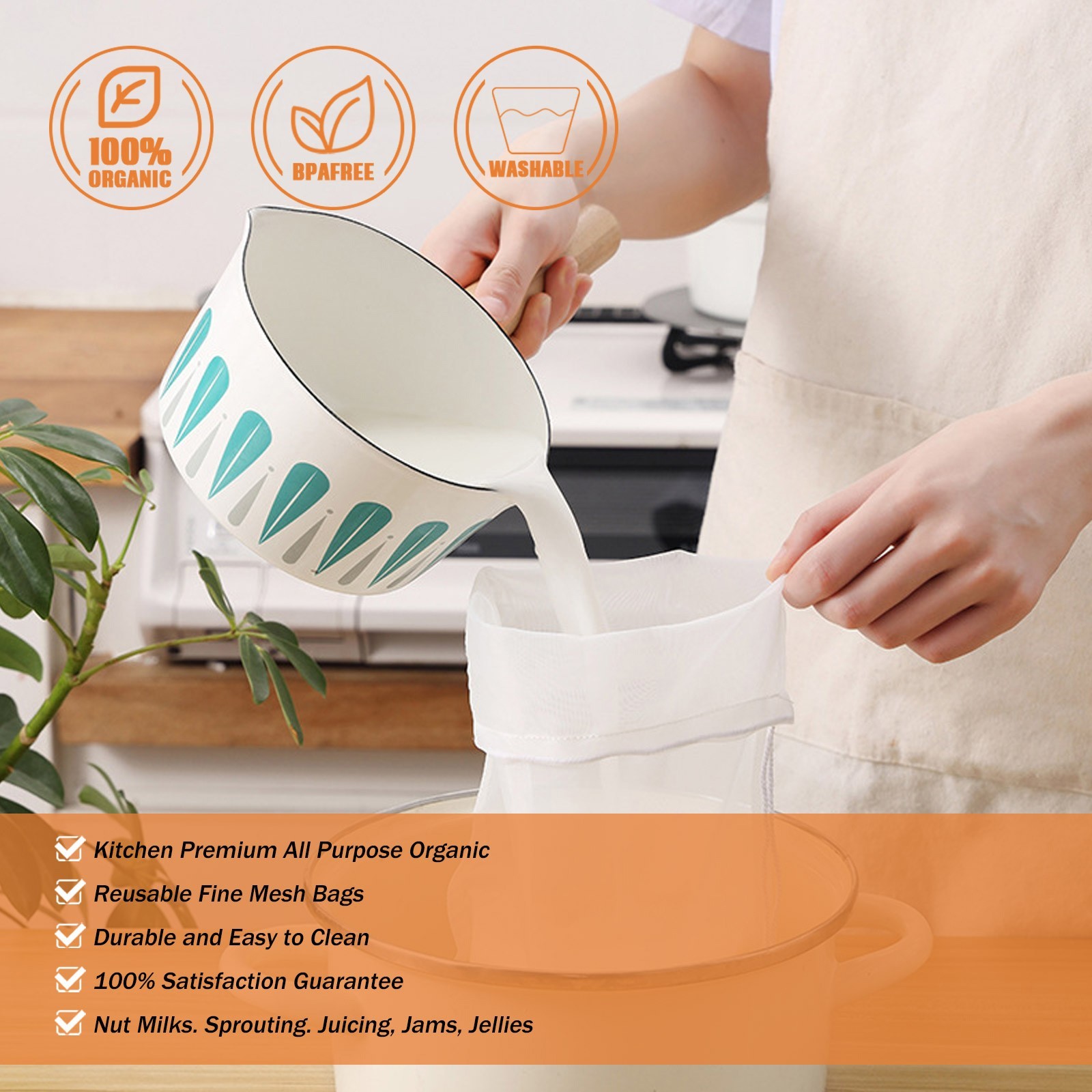Характеристики более широкиеОтверстия и закругленные углыУстраняетОтходы и грязный сброс. Идеальная форма и размерСоковыжималкиБольше площади поверхности. Благодаря своей супер текстуре и безцеллюлозным свойствам повара и любителей натуральных продуктов питания! ПрощеСоковыжималкиДля более быстрых результатов, и вам никогда не придется напрягать свое Миндальное молоко или холодный кофе с пивоварней дважды. Изготовлен из высококачественного нейлона. Вы можетеСоковыжималкиОн с обоих hПалочки.Посылка включает в себя: