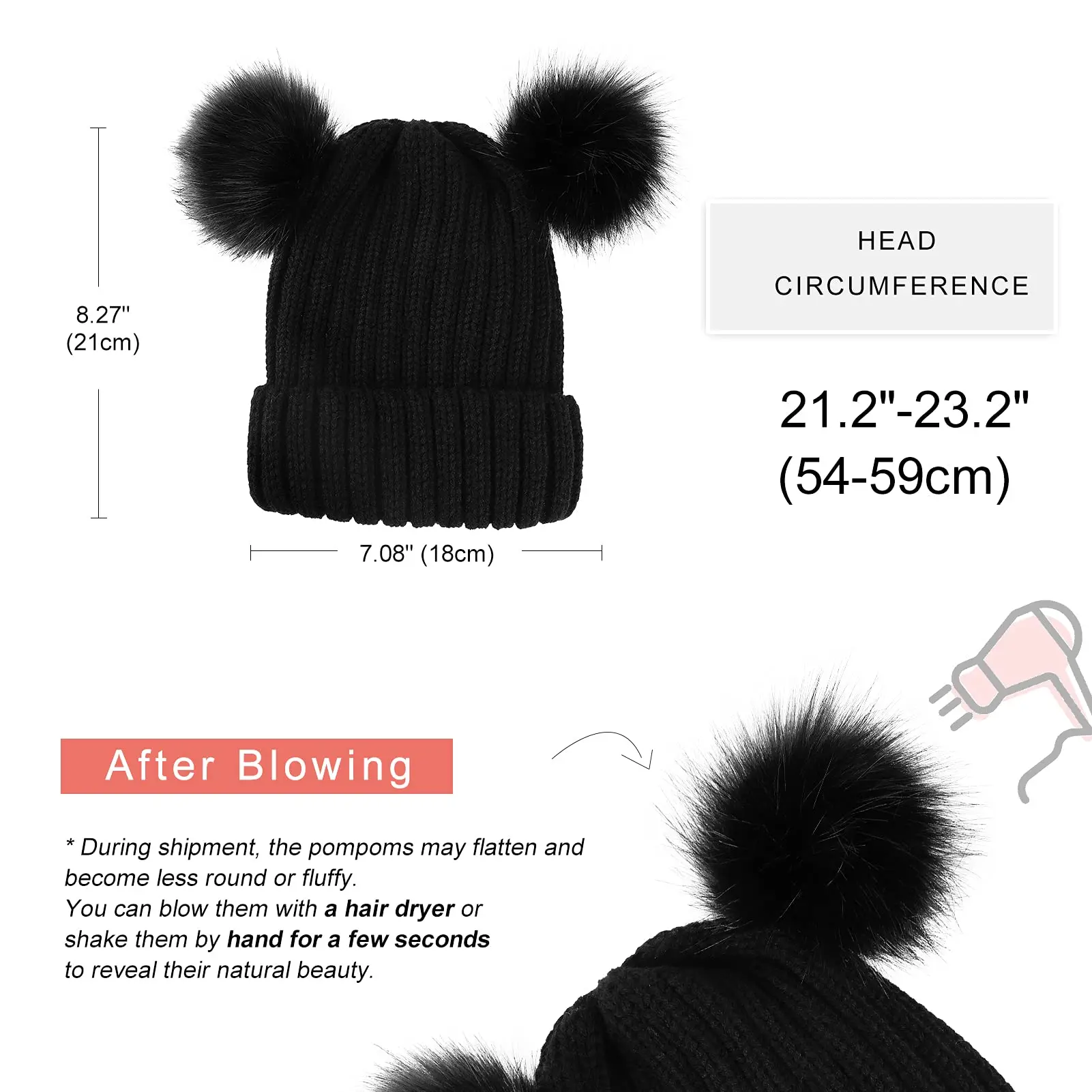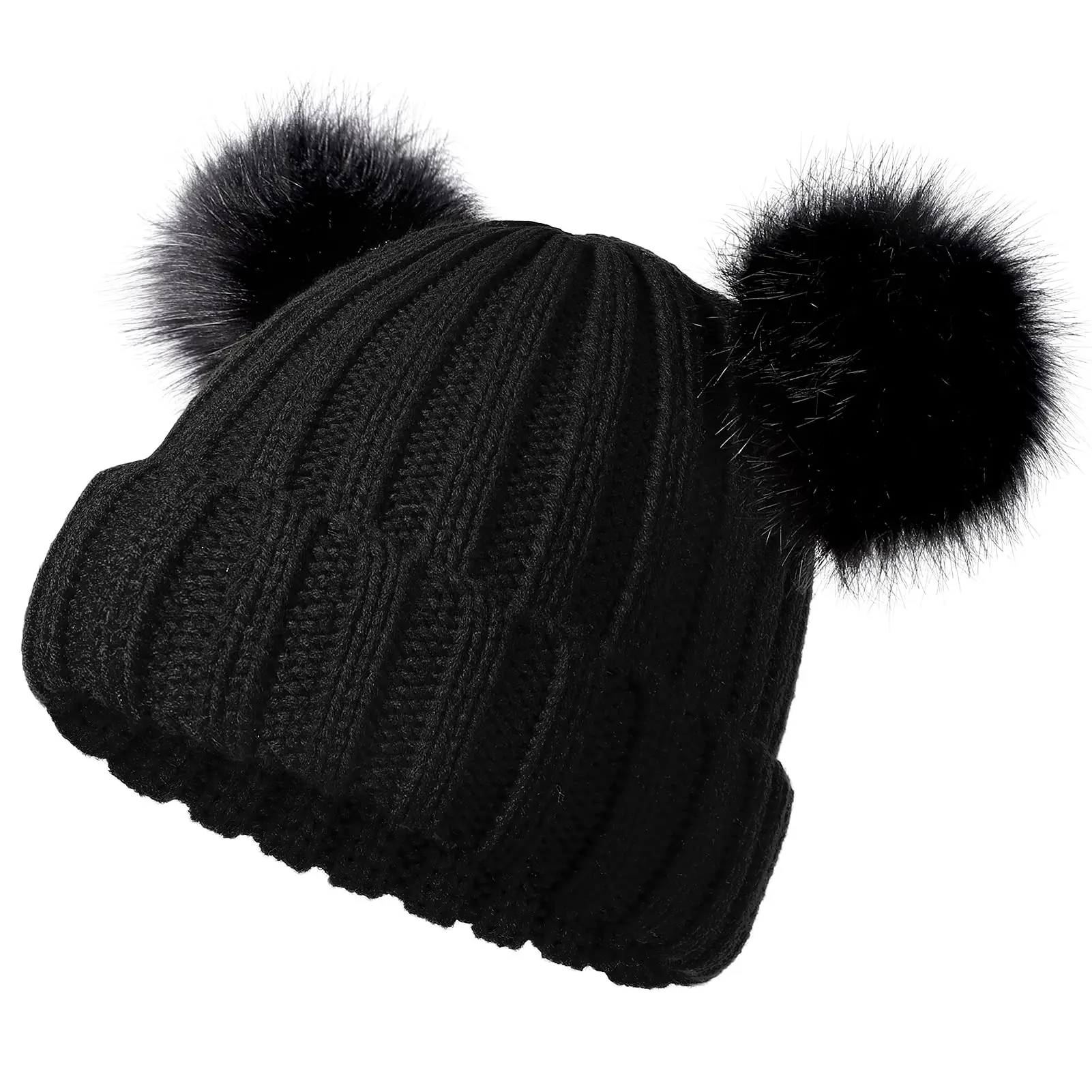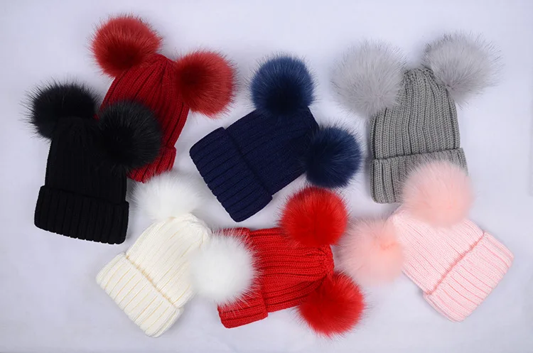 Роскошная Брендовая женская зимняя шапка с двойным помпоном, шапка со съемным меховым помпоном, милая теплая мягкая вязаная шапка с ушками