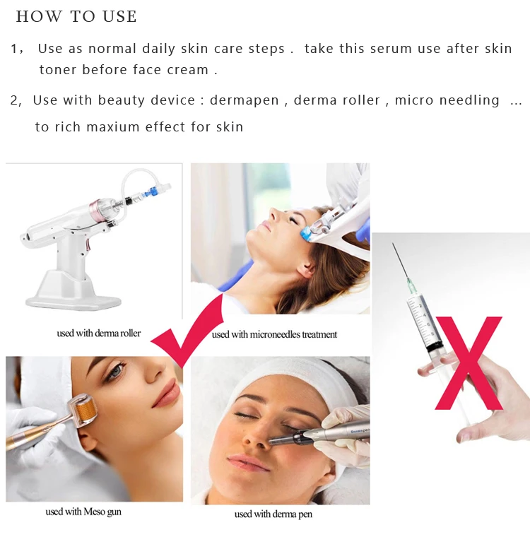 2. Использовать с косметическим устройством: dermapen, Дерма ролик, микро needling... Для насыщенного эффекта макси для кожи.