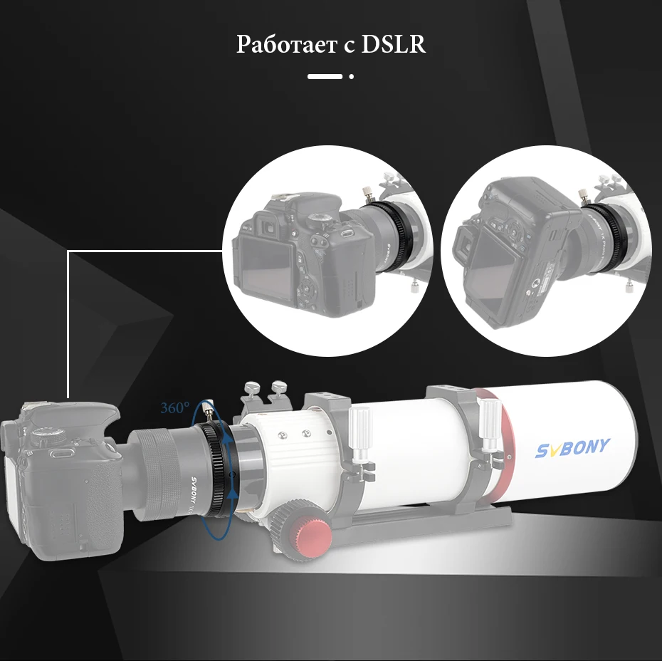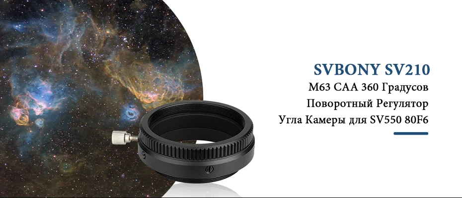 CAA совместим с SVBONY SV550 80F6, и также совместим с астрономическим телескопом с размером резьбы M63 * 1.