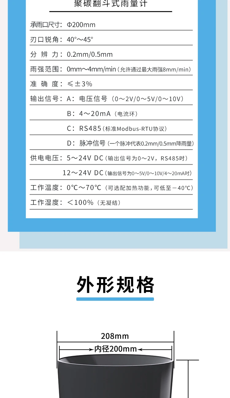 Тип 3: 0,2 мм RS485 сигнал (Встроенные часы) RS485 стабильный выход измерение PrecisionBuilt-in Высокоточный чип часы высокой емкости кнопки батареи могут выводить 10 параметров осадков