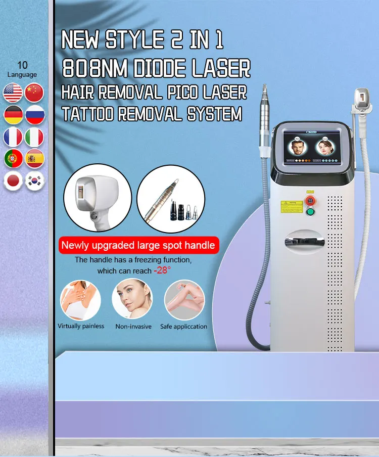 2 в 1 808nm диодный лазер с пико лазерной машиной
