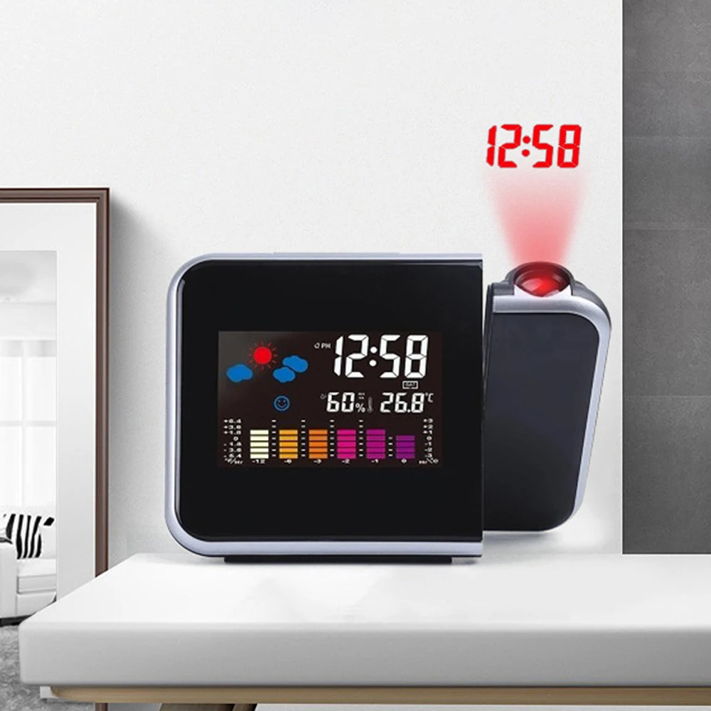 Прозрачная Проекция:При питании от аккумулятора светодиодный индикатор включается только в течение 8 секунд после каждого нажатия, и время может быть проецировано на стену или потолок (при питании от кабеля USB conect, подсветка и проекция будут работать все время).Расстояние проекции составляет около 1-5 метров, проекция может поворачиваться на 180 °. Когда проекционные часы находятся в 2 метрах от принимающей стены или потолка, высота проектируемого шрифта составляет около 20 см. Когда проекционные часы находятся в 6 метрах от принимающей стены или потолка, Высота проектируемого шрифта составляет около 60 см.