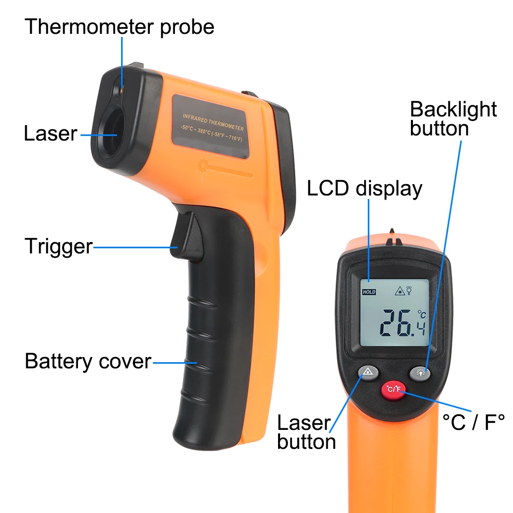 Продукт используется для измерения температуры поверхности: труб горячей воды, частей горячего двигателя, горячих трубок и изоляции, электрических соединений, балластов в электрических огнях и т. Д. Кухонные поверхности, также могут быть использованы для измерения температуры поверхности кухонных инструментов.