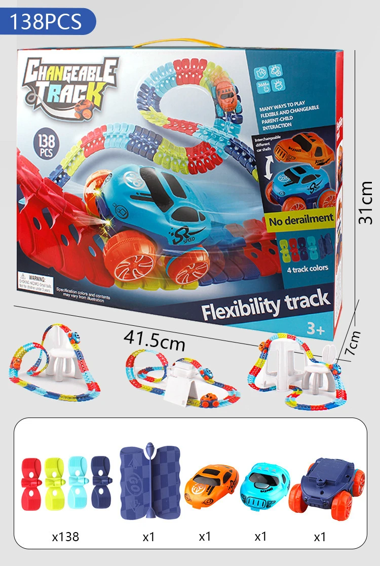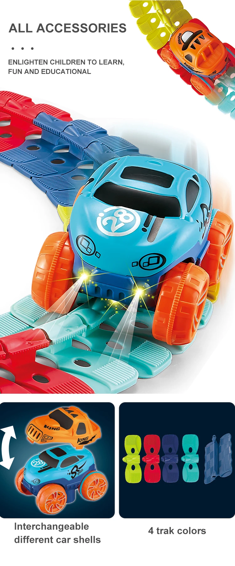 3. Легко Собрать: Просто Защелкните детали вместе, и вы получите полностью настраиваемую скоростную дорогу своего собственного творения. Шкив затвердевает дорожку, опрокидывает наклону, чтобы не бояться упасть