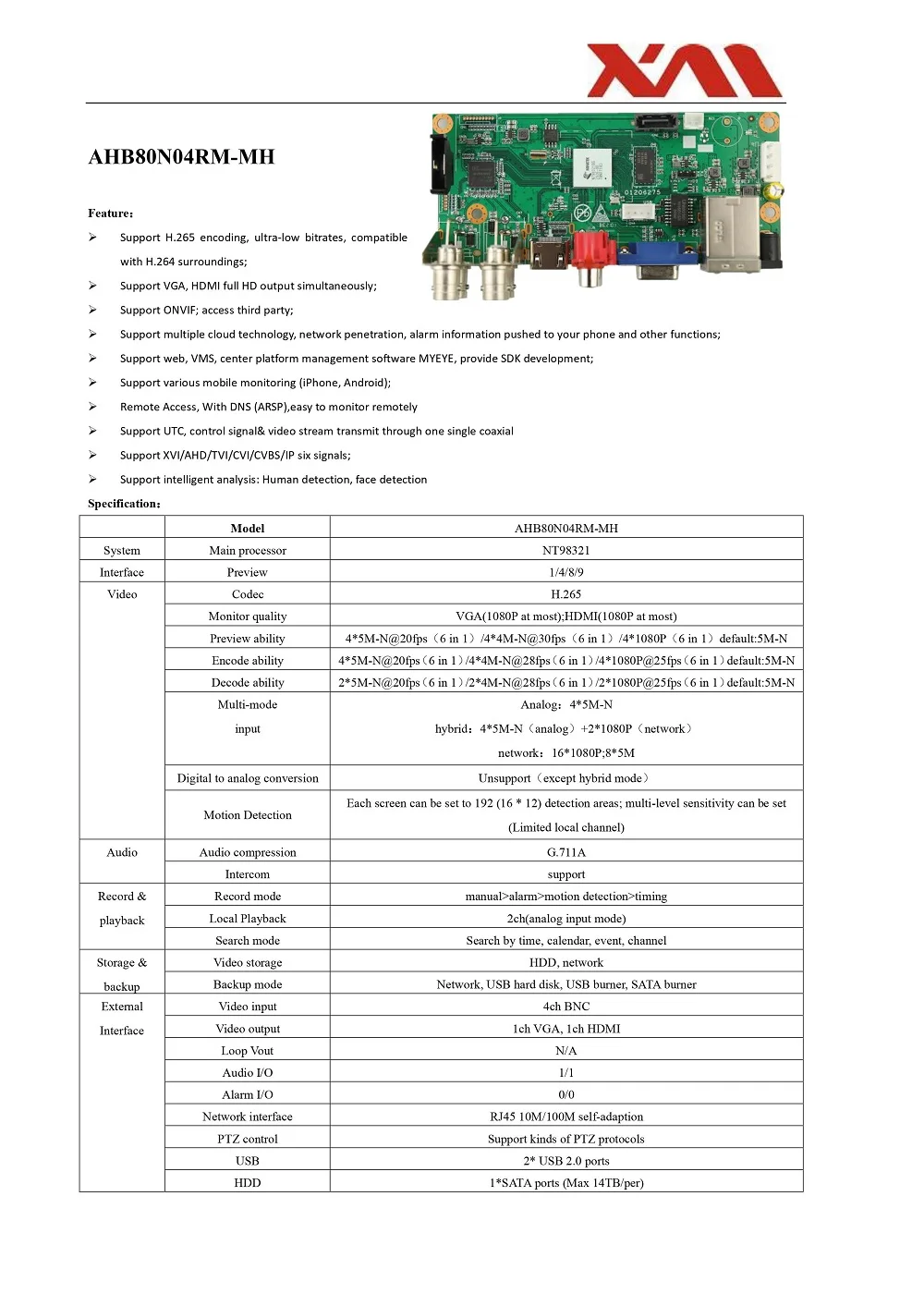1: 4CH 5MP-N XVI/AHD/CVI/TVI