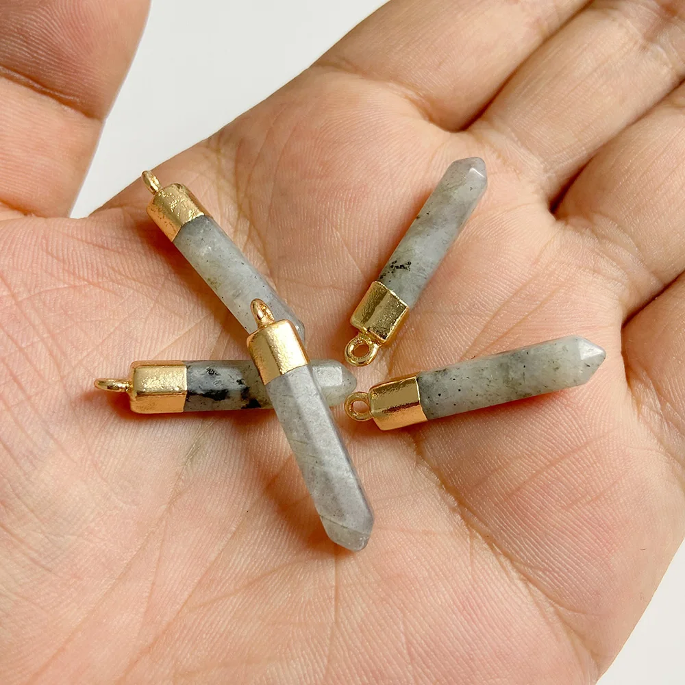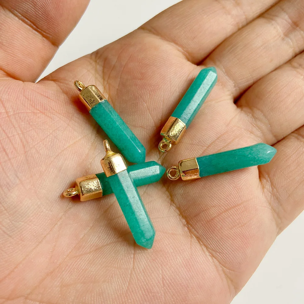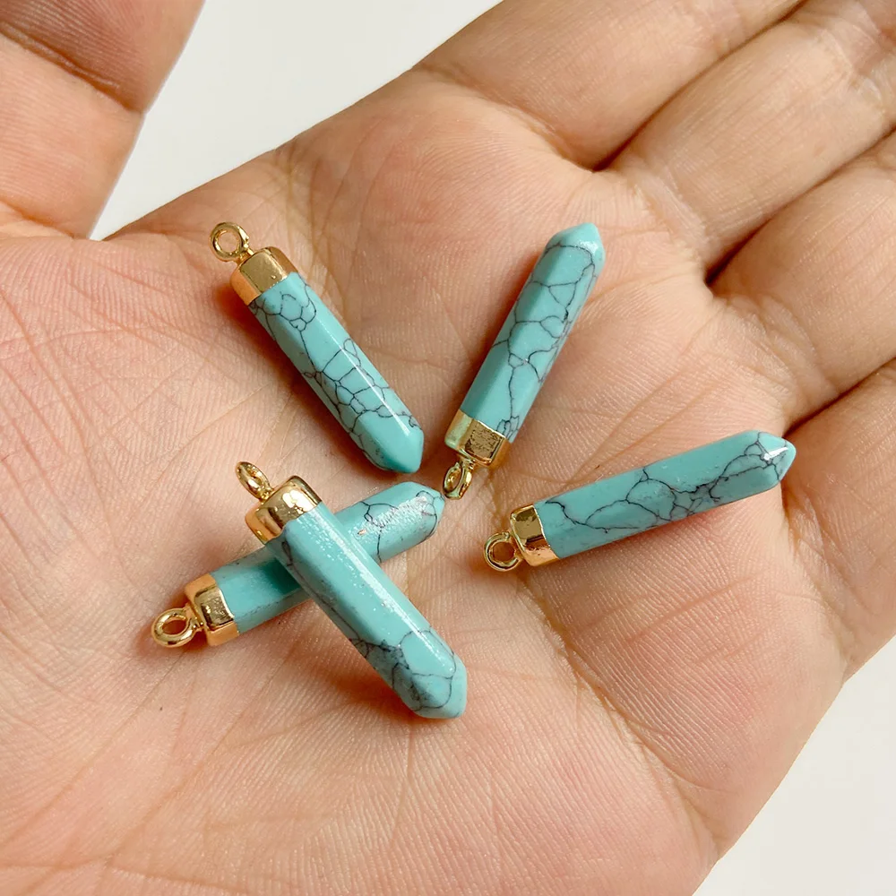 Натуральный халцедон, каменные подвески, шестиугольная пуля, бирюзовый кулон, подходит для женщин и мужчин, ожерелья, серьги, сделай сам, ювелирное изделие