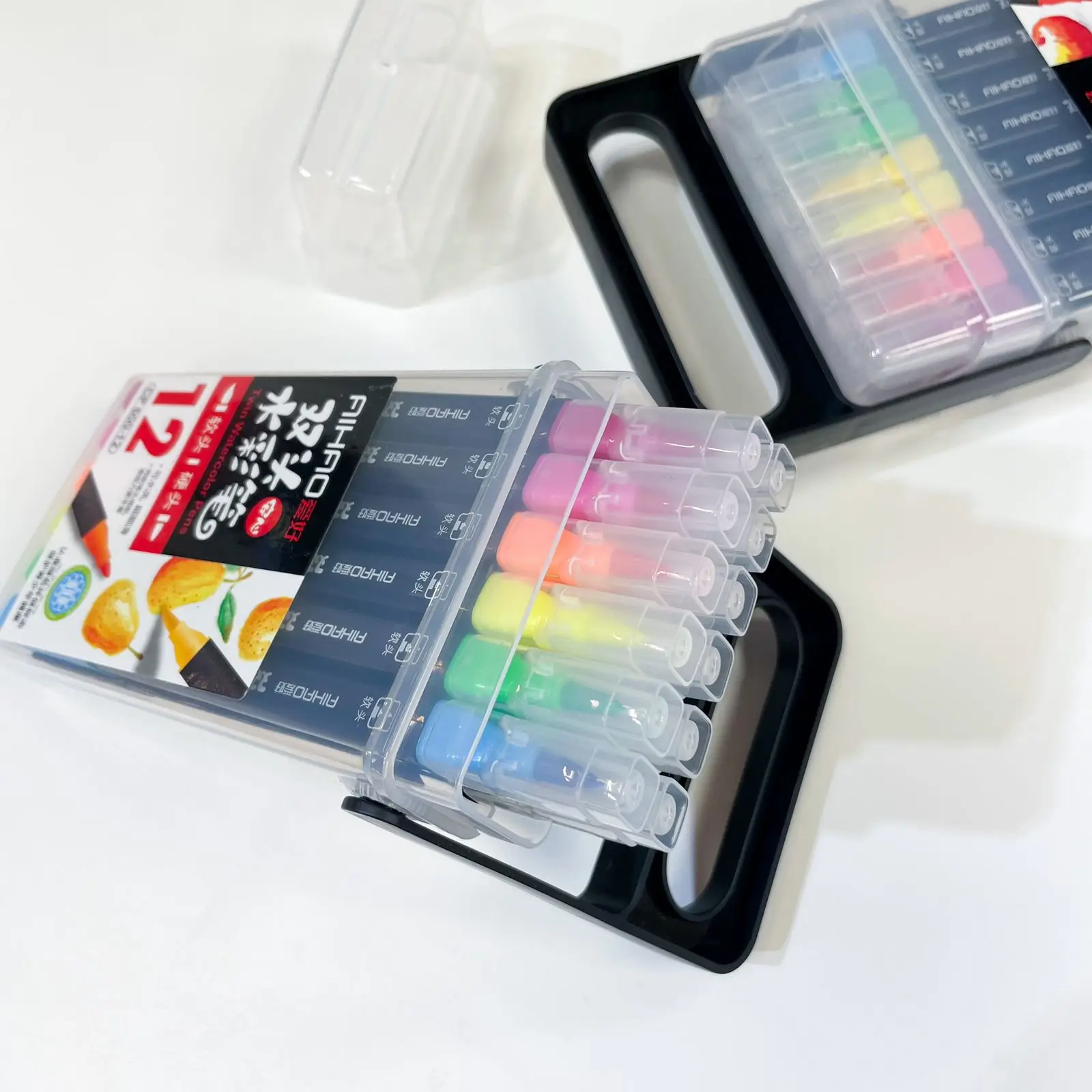 Фломастеры двухсторонние на водной основе: наконечник кисть и наконечник пуля.