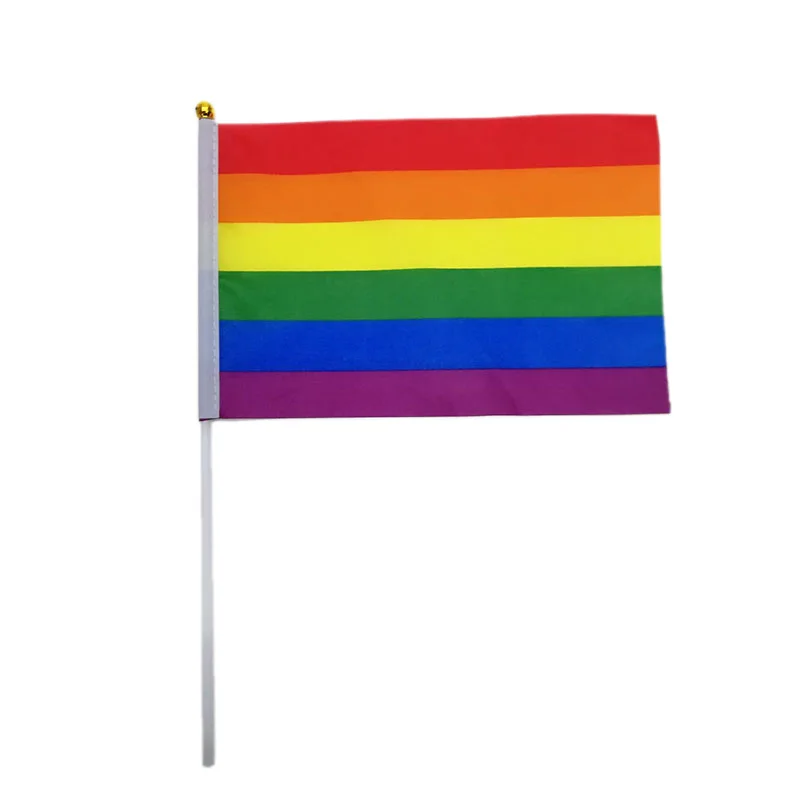 14X21cm Rainbow Flag With Flagpole Rainbow Gay Lesbian Homosexual Bisexual Pansexuality Transgender LGBT Pride Hand Held Flags