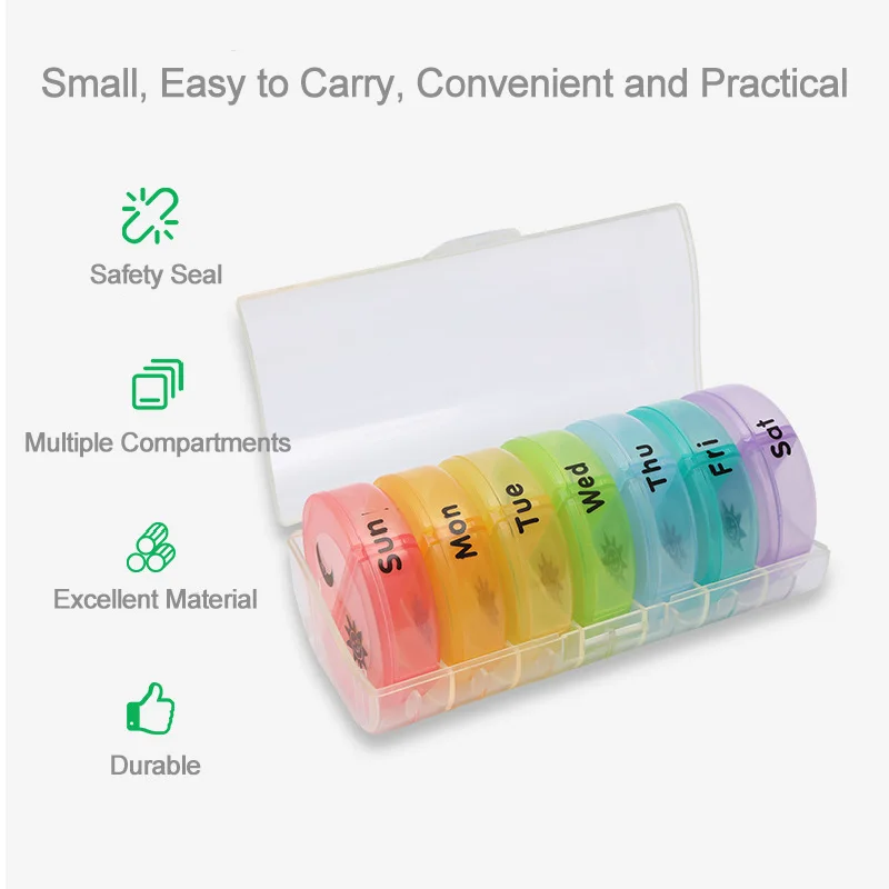 Хорошо организованный чехол для таблеток легко вынимает ваши таблетки из внешнего контейнера. Внутренние органайзеры для лекарств могут поместиться в карман или сумочку. Очень удобно снимать во время путешествий и работы.