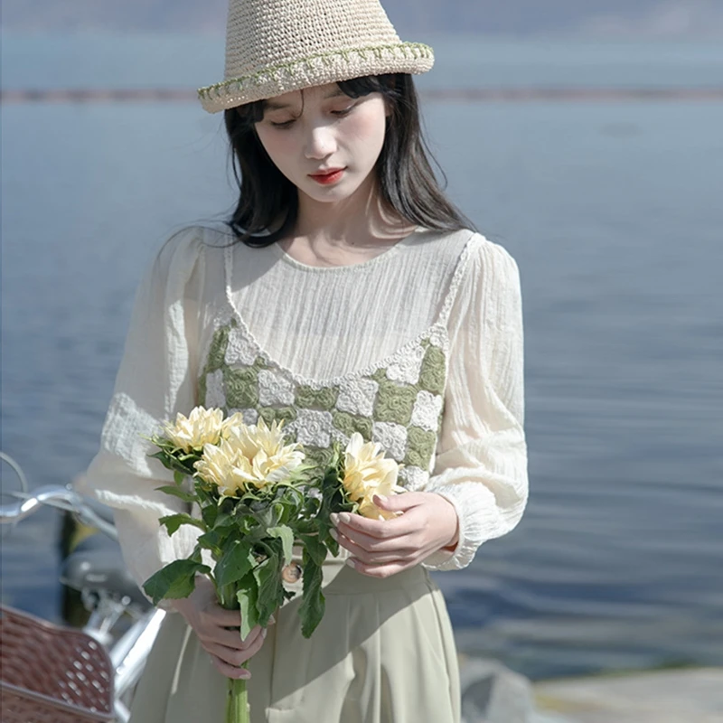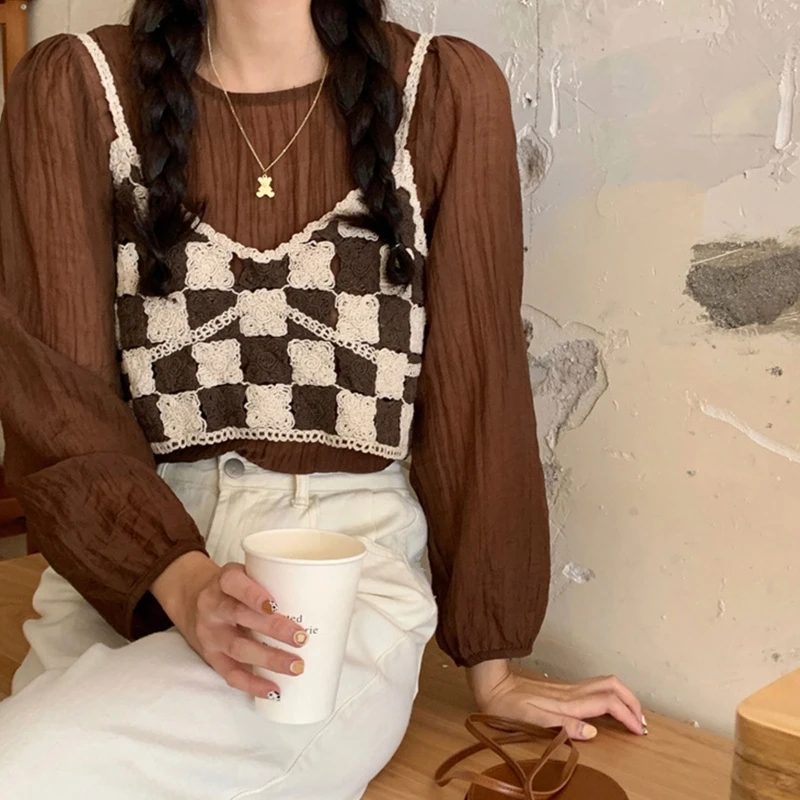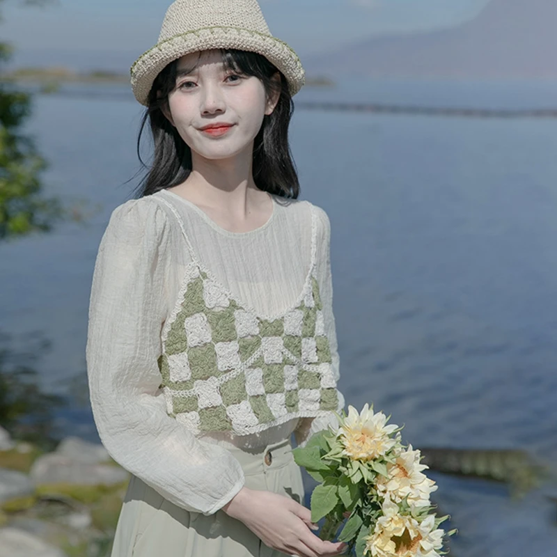 Ажурный вязаный крючком, клетчатый плед и цветочный узор, короткая укороченная длина.