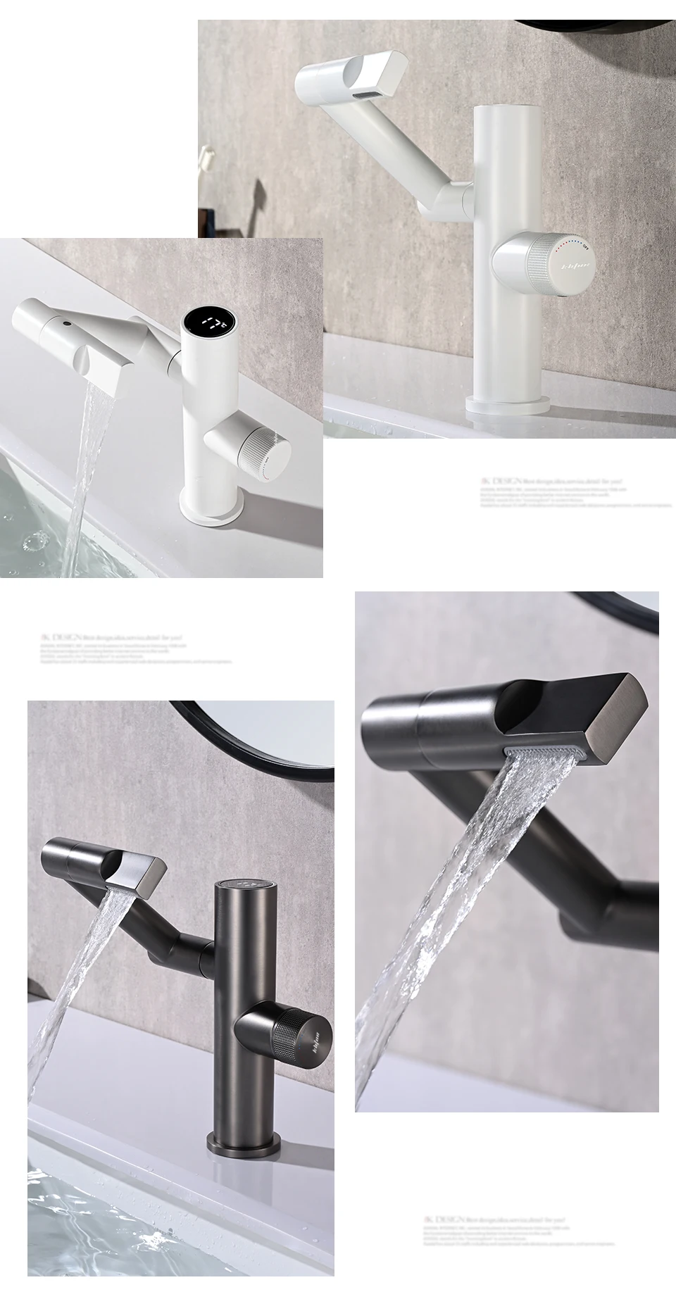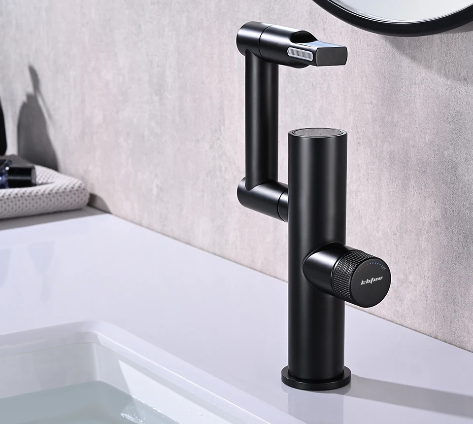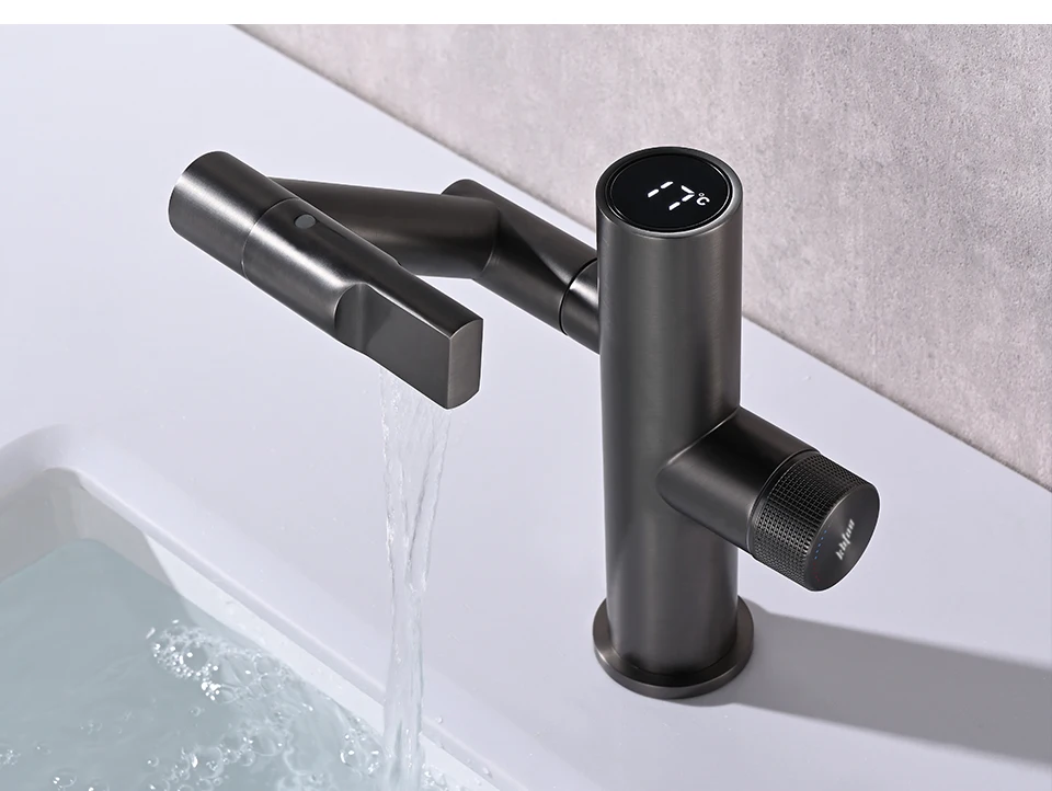 Современный интеллектуальный цифровой дисплей светодиодный смеситель для раковины для ванной комнаты 360 ° вращающийся кран для мытья горячей и холодной воды смеситель для раковины кухонный кран