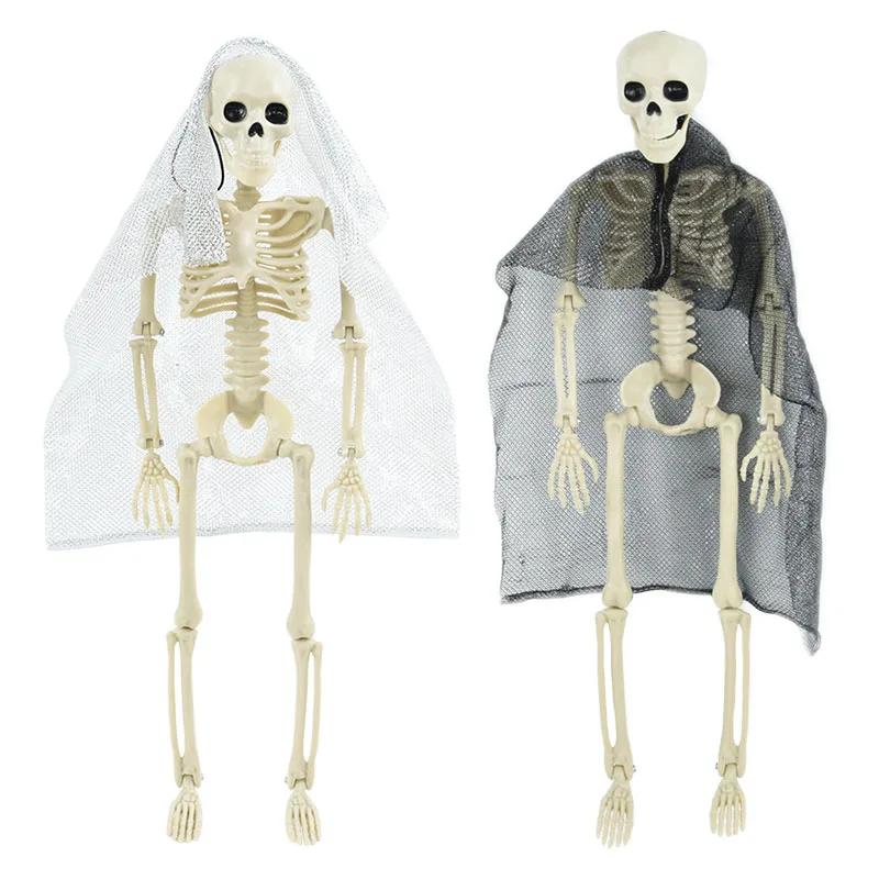 40CM Simulation Humans Skeleton Plastic Movable Skull Skeleton Model Halloween Props Secret Room Haunted Horror House Decoration