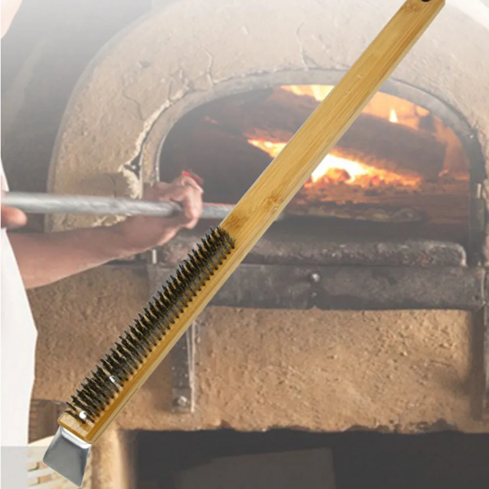 Материал: ручка изготовлена из бука с достаточной твердостью для поддержки головки стальных щеток и скребка для очистки. Щетка из медной проволоки может выдерживать высокие температуры любой печи для пиццы и камня для пиццы.