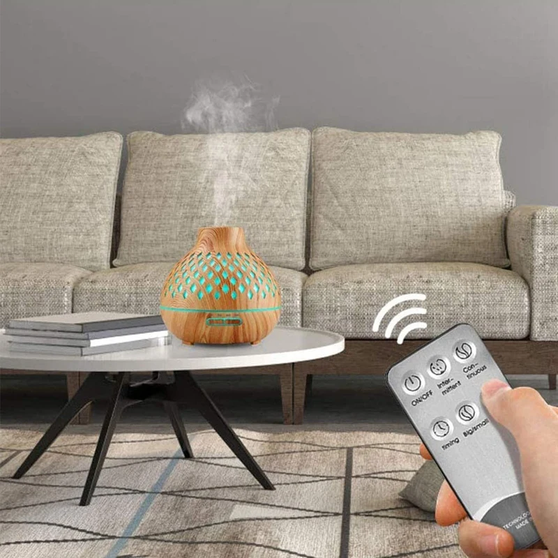 Дистанционное управление и автоматическое выключение без воды: вы можете легко контролировать аромадиффузор с помощью пульта дистанционного управления, включить или выключить, изменить туман от низкого до высокого, защита от недостатка воды для обеспечения безопасности. Диффузор автоматически выключается, когда воды недостаточно.