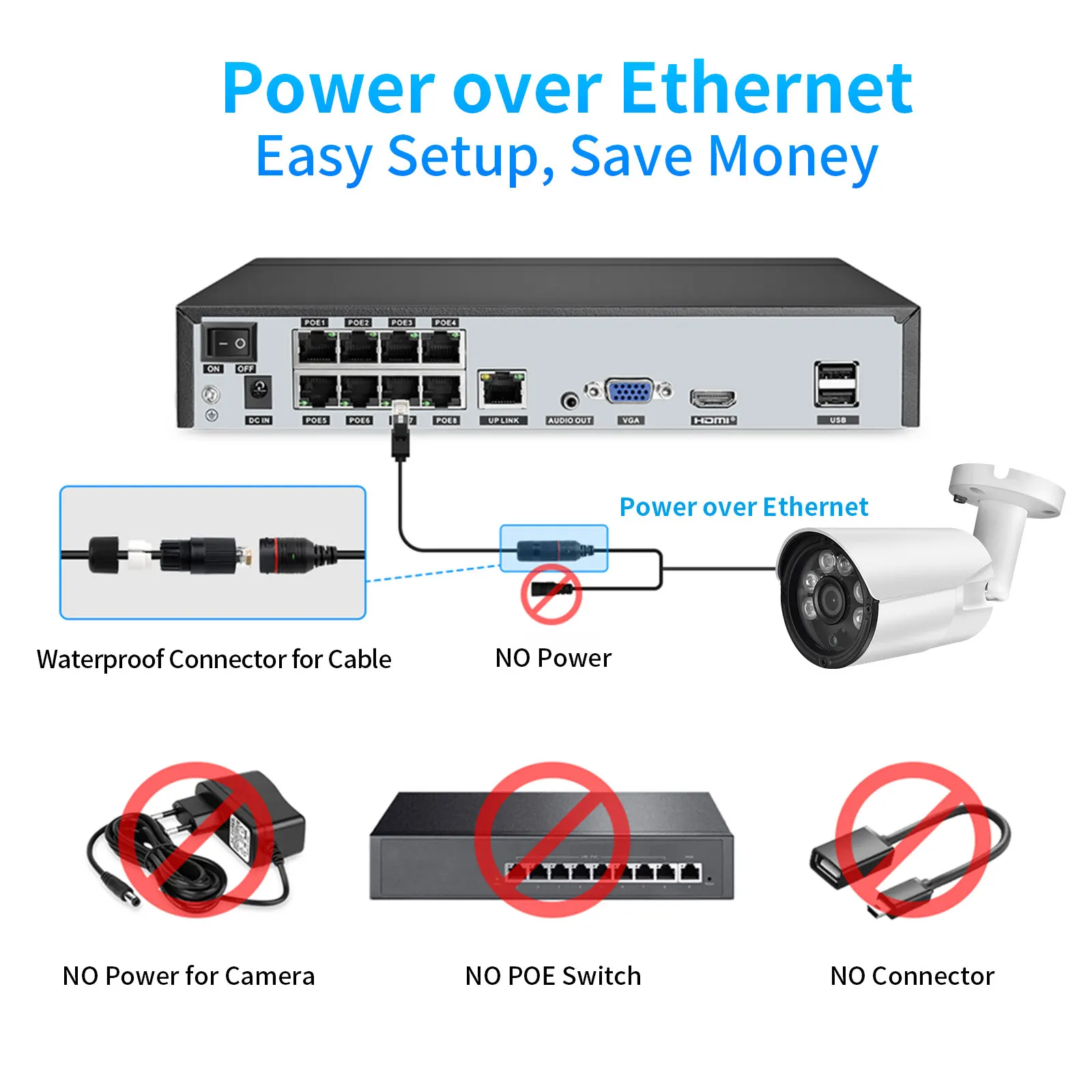 Настоящая игра и подключи безопасность! Он оснащен POE (Power Over Ethernet) с одним кабелем, соединяющим каждую IP-камеру с NVR как для источника питания, так и для видео и одиночной передачи. Простота подключения-Процесс подключения не может быть проще для энтузиастов DIY и новичков