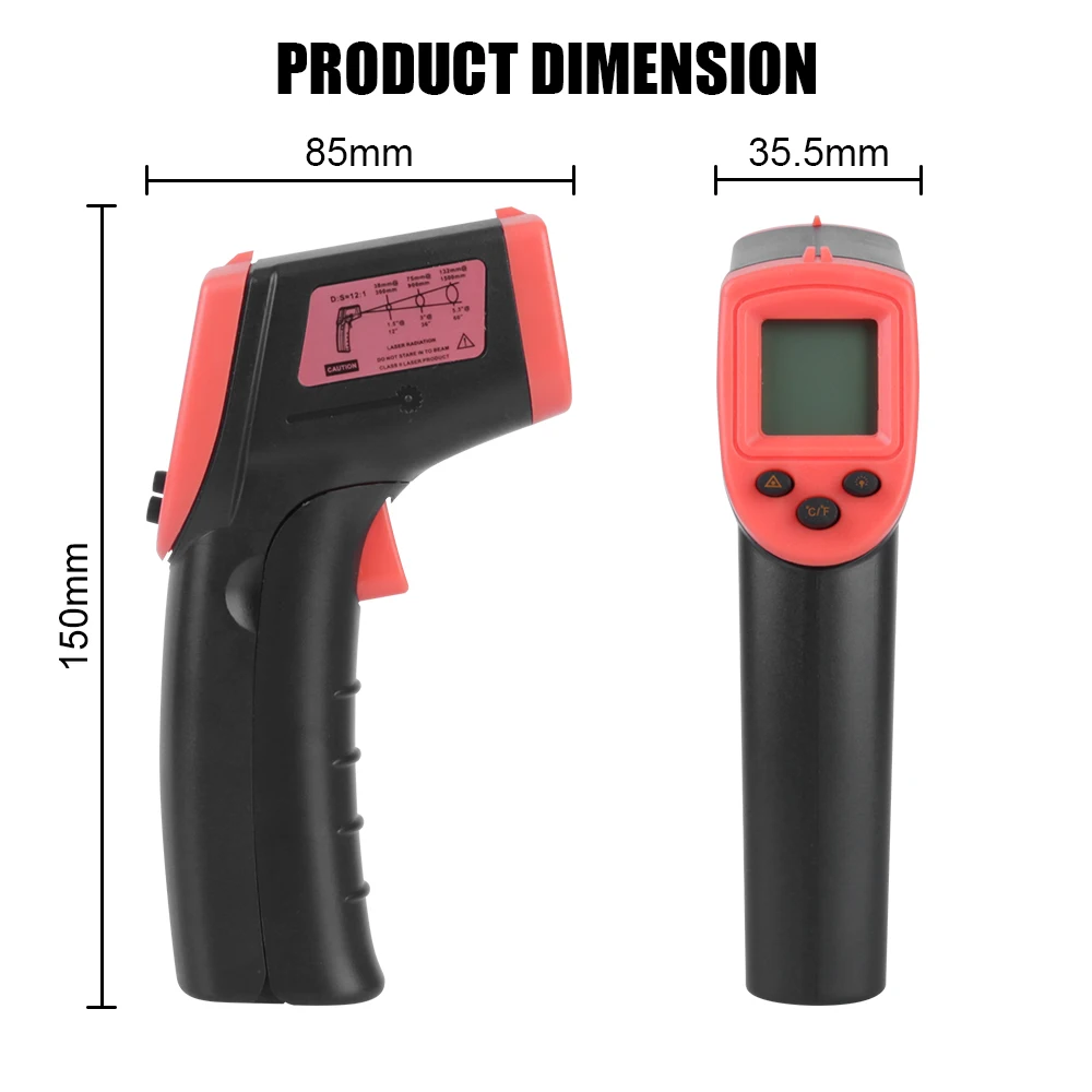 Компактный, прочный и удобный. Просто наведите цель и нажмите кнопку, чтобы прочитать температуру текущей поверхности менее чем за секунду. Он надежно измеряет температуру нагреваемых, опасных или неприкасаемых поверхностей.