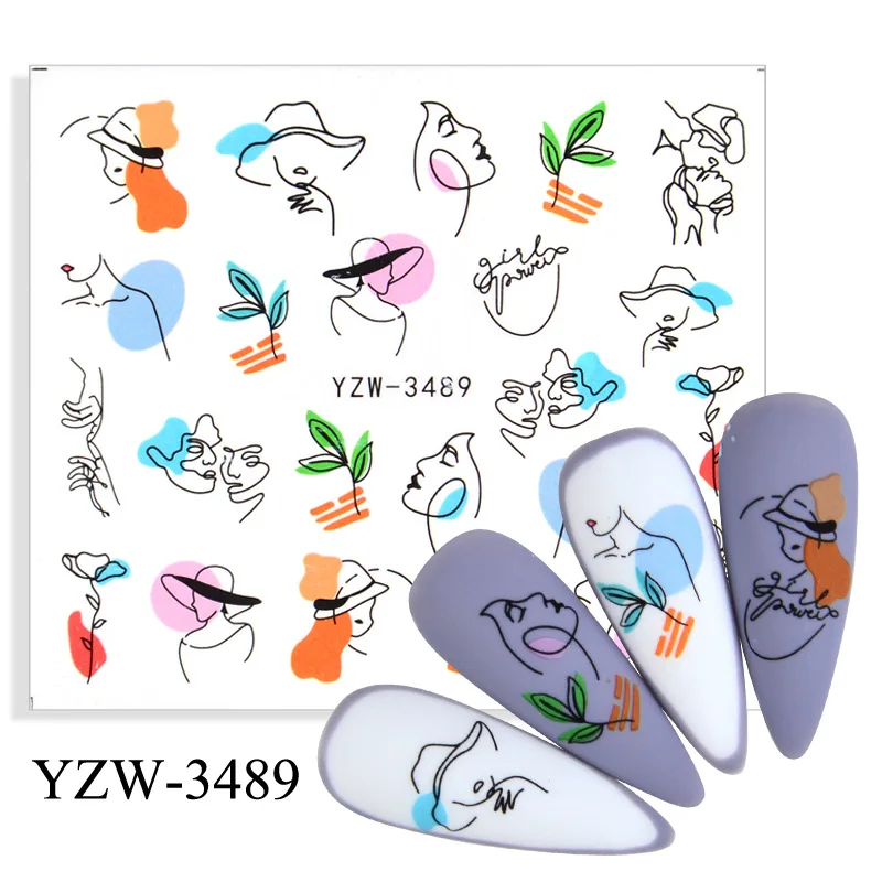 1PCS Sexy Lady Shaped Stickers For Nails Flower English Letters Face Cheap Water Tattoos Nail Art Sticker Decoration Accessories