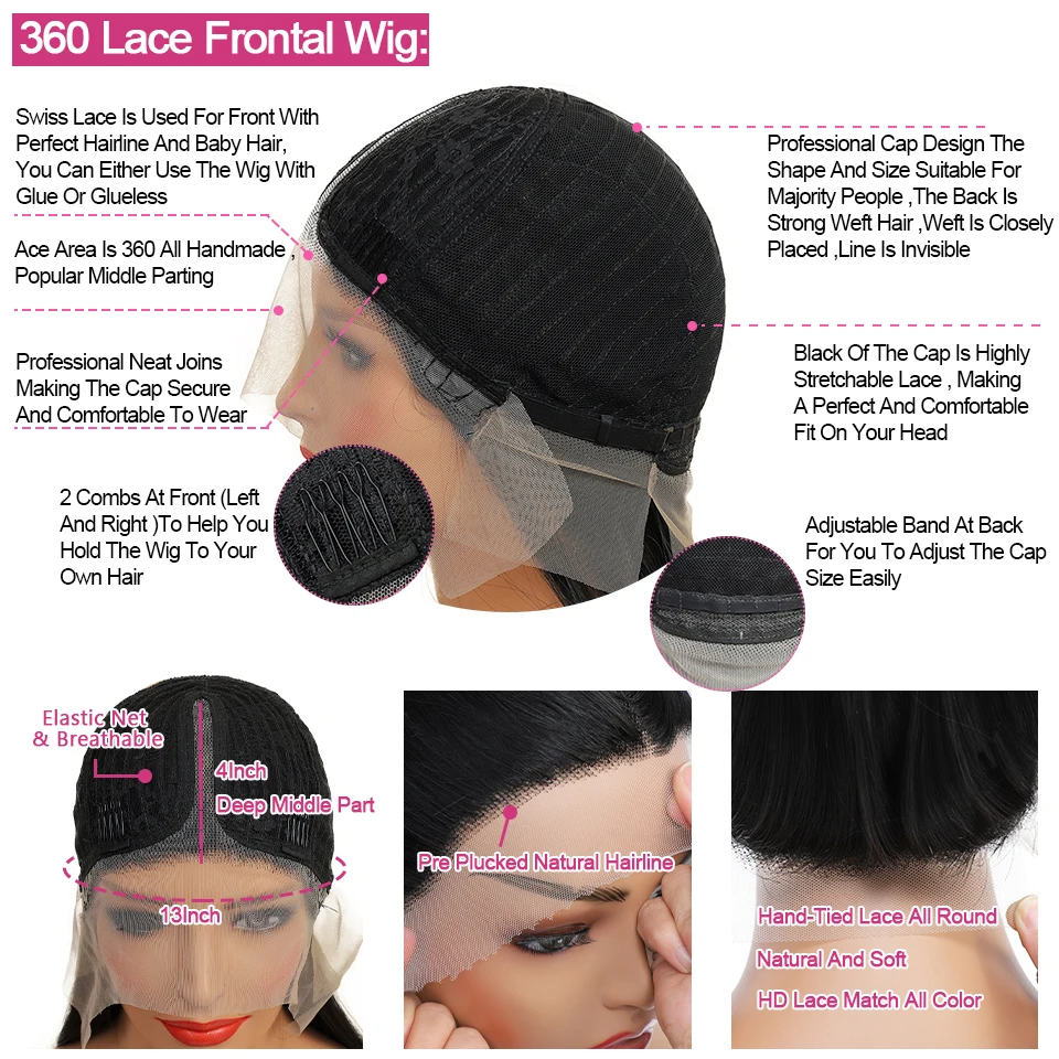360 круг кружево вокруг на всю голову, естественный вид, со всех сторон, 22,5 дюймов СРЕДНИЙ Размеры Кепки, 180% плотность, 90% синтетический термостойкий парик волос + 10% человеческих волос, делает парик красиво скреплены ремешки, лучше, прозрачное кружево HD может сочетаться со всеми цветами кожи